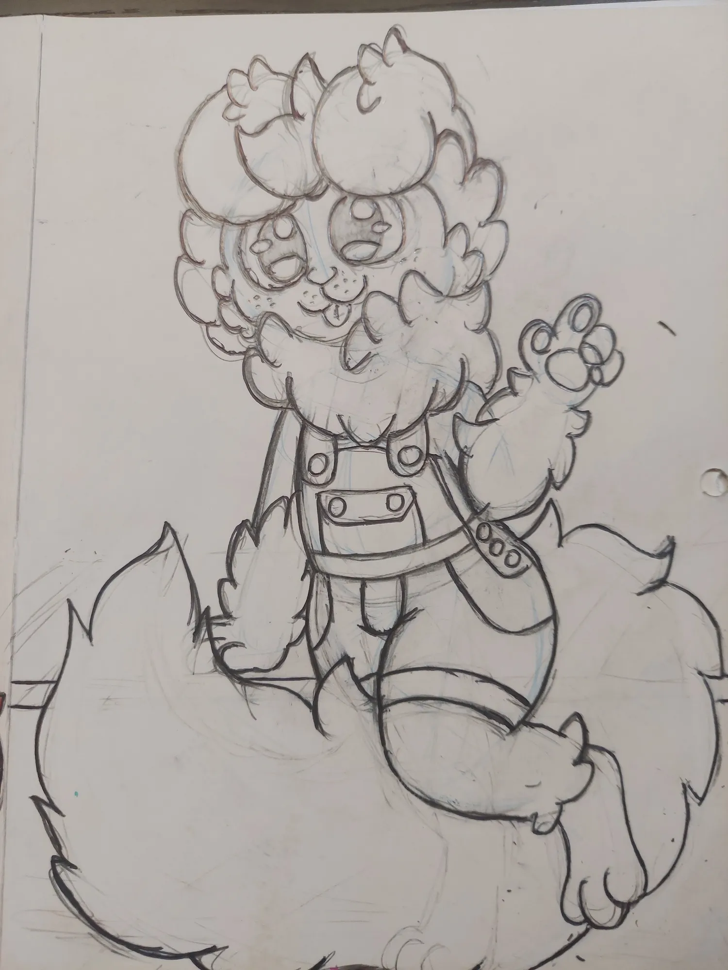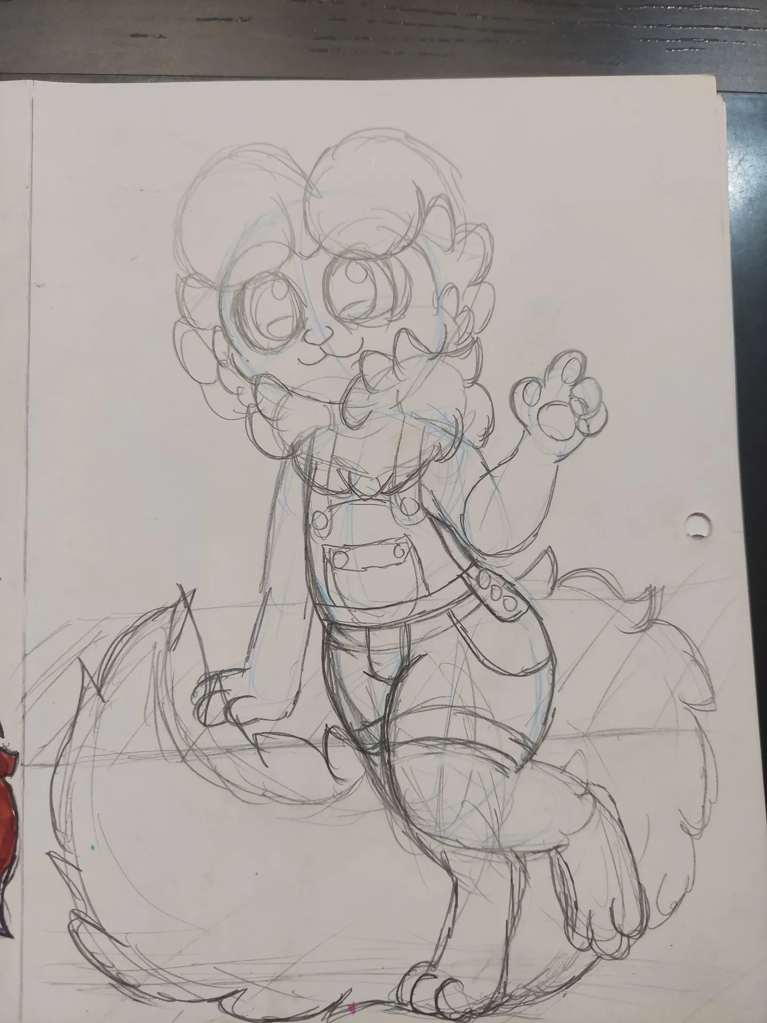 Depois, eu fiz a pata que estaria apoiada em algum local, e a outra que estaria apontando para alguém ou algum lugar. E estava gostanto de como o desenho estava ficando.