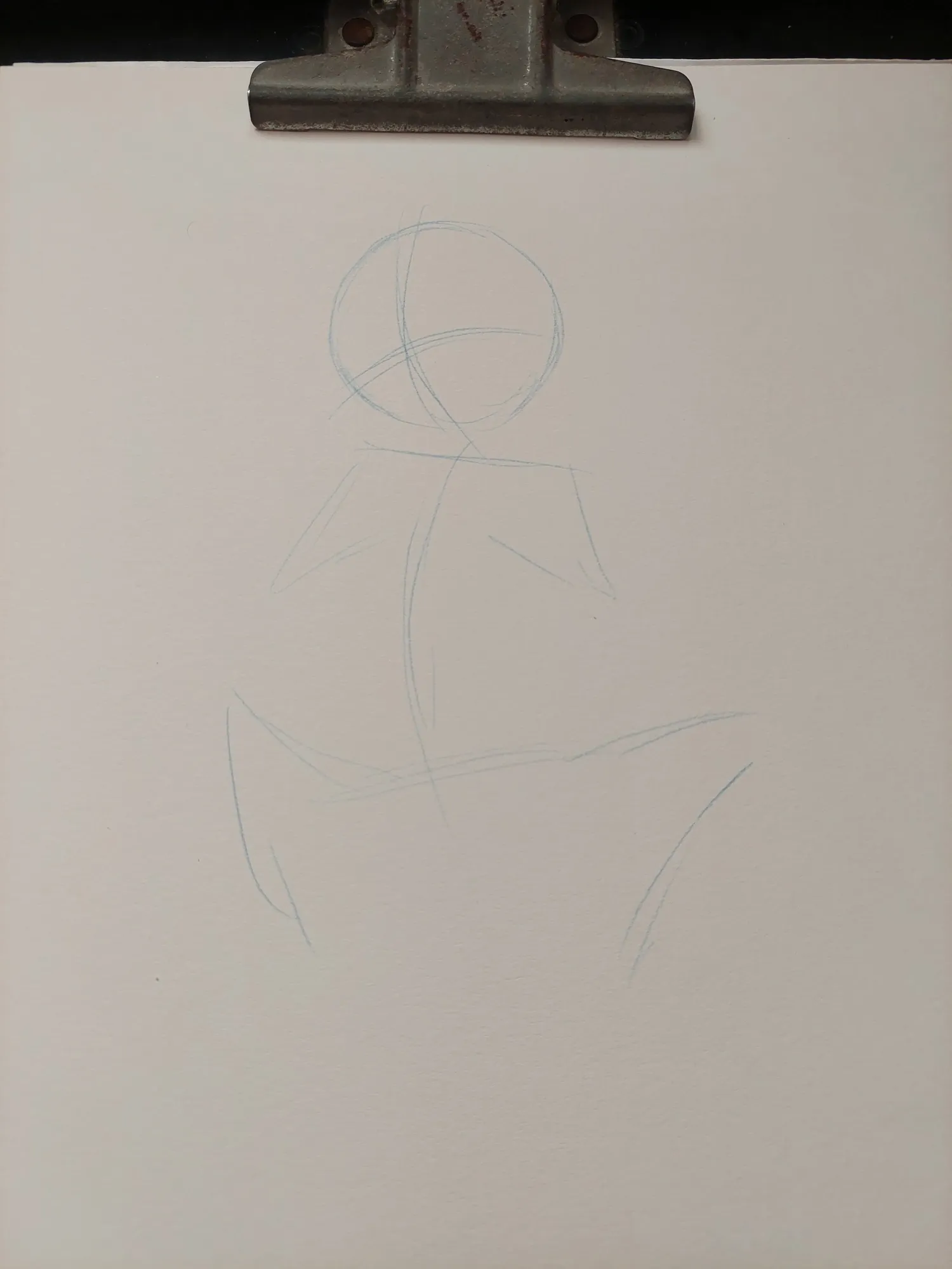 Comecei o desenho fazendo as primeiras linhas da pose. O Romeo estaria com a cabeça levemente virada para o lado, com as patas próximas ao peito e as pernas levemente abertas. Essa é uma pose que gostei, e assim prossegui no desenho.