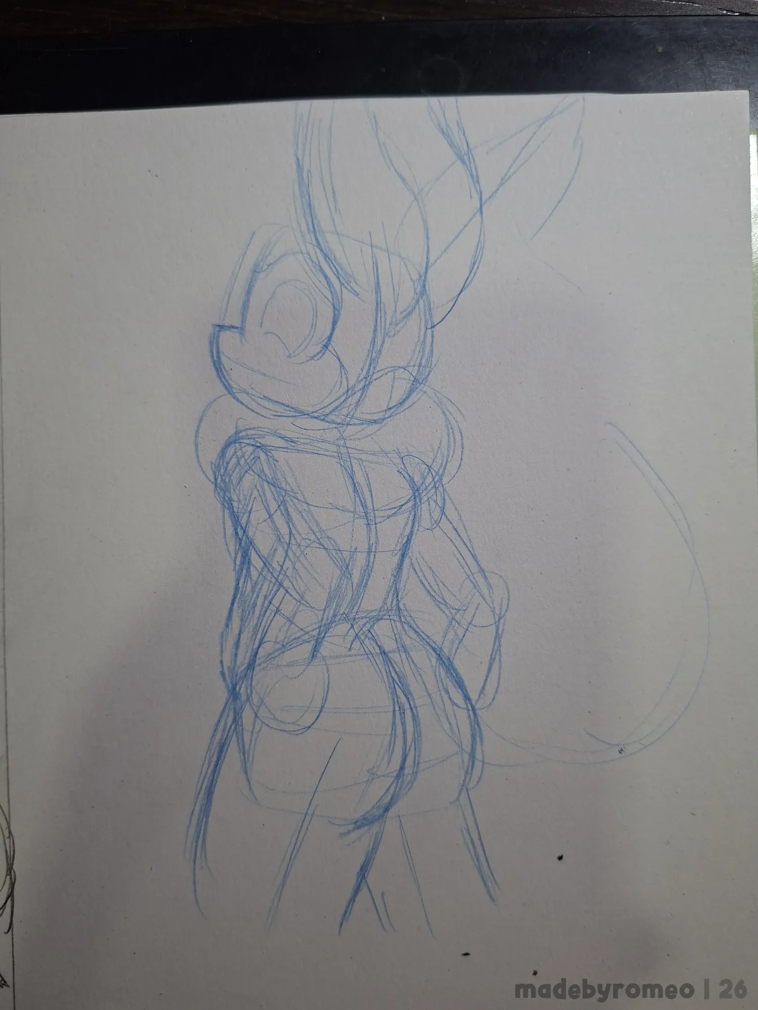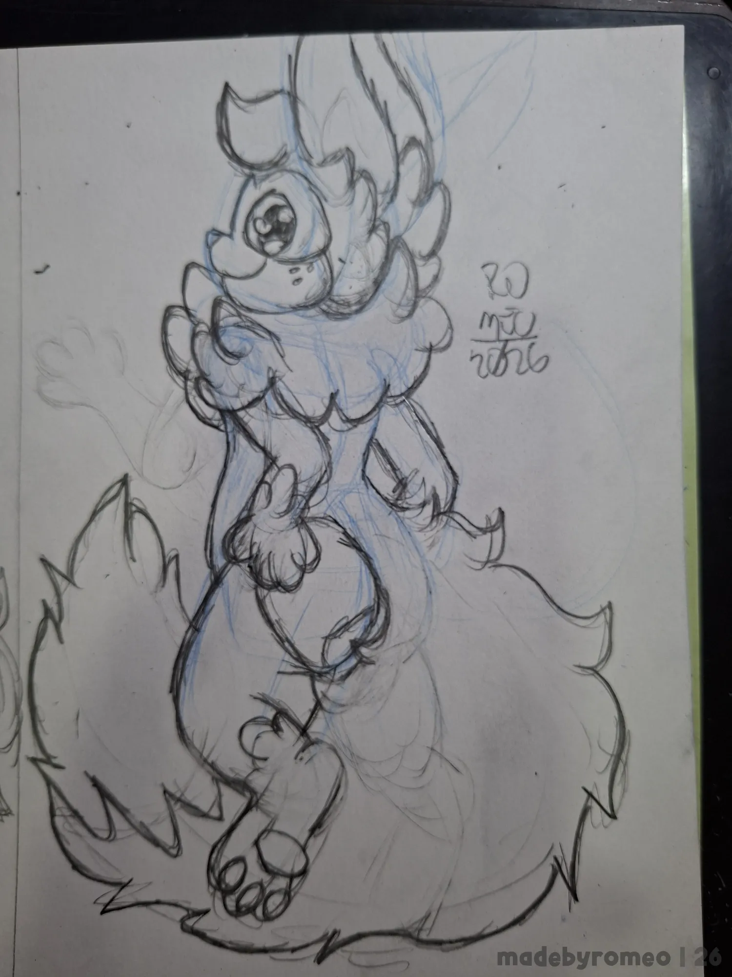 Por fim, avancei na cauda, comecei a apagar os traços em excesso e a reforçar os principais, assim finalizando esse desenho.