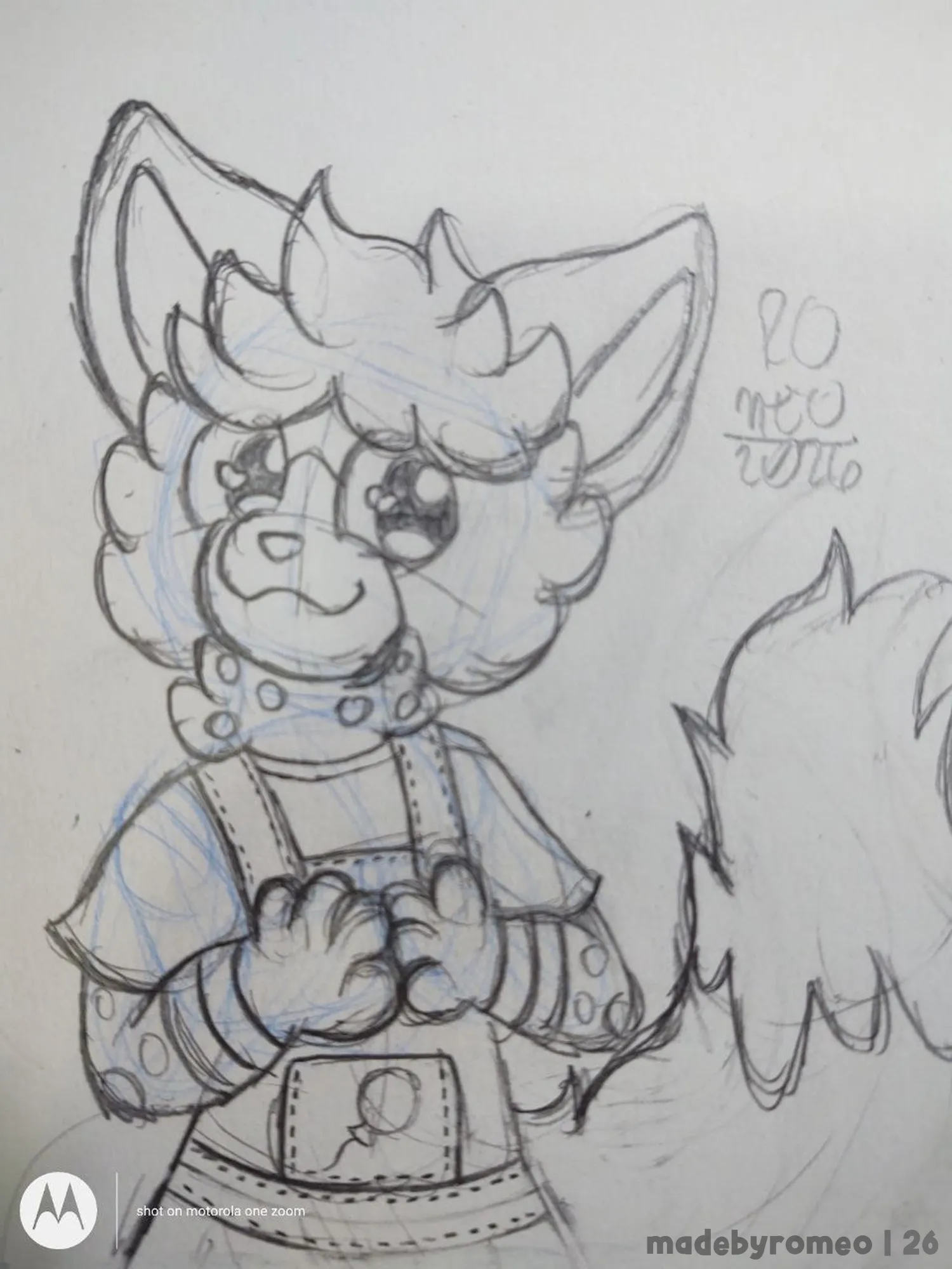 … e prossegui com o desenho, fazendo o Renato Clarein tomar forma. Fiz o cabelo, os pelos da cabeça e do pescoço, o macação; que achei muito bonitnho; o rosto e as patas. E depois, “estendi” um pouco mais o desenho, fazendo um pouco mais do macacão.