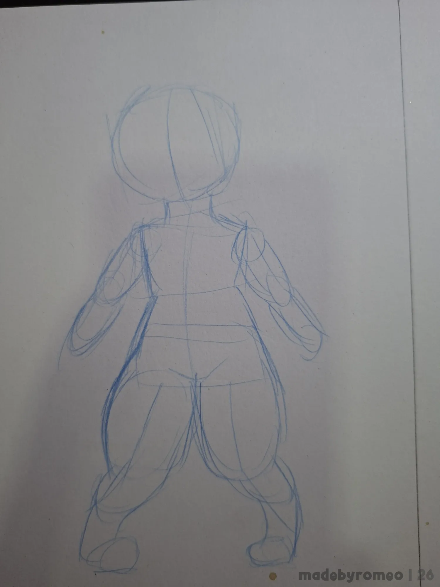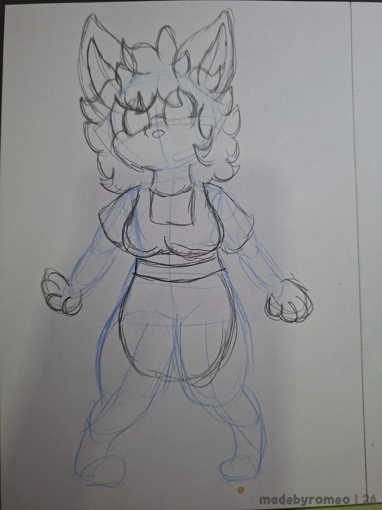 Comecei o desenho como sempre: Com as primeiras linhas e formas da pose da Ruby. Primeiro, fazendo as formas básicas e depois refinando essas formas.