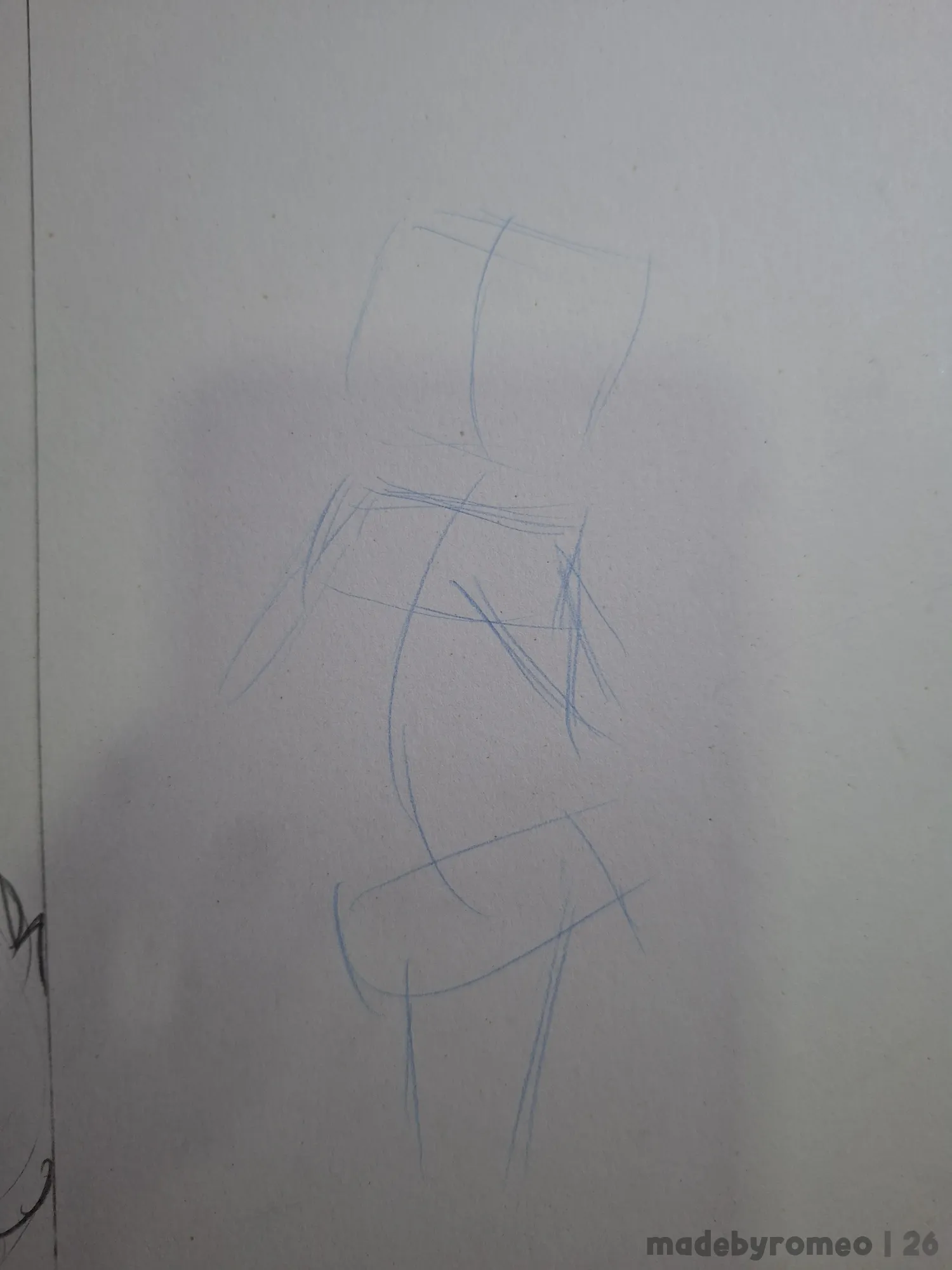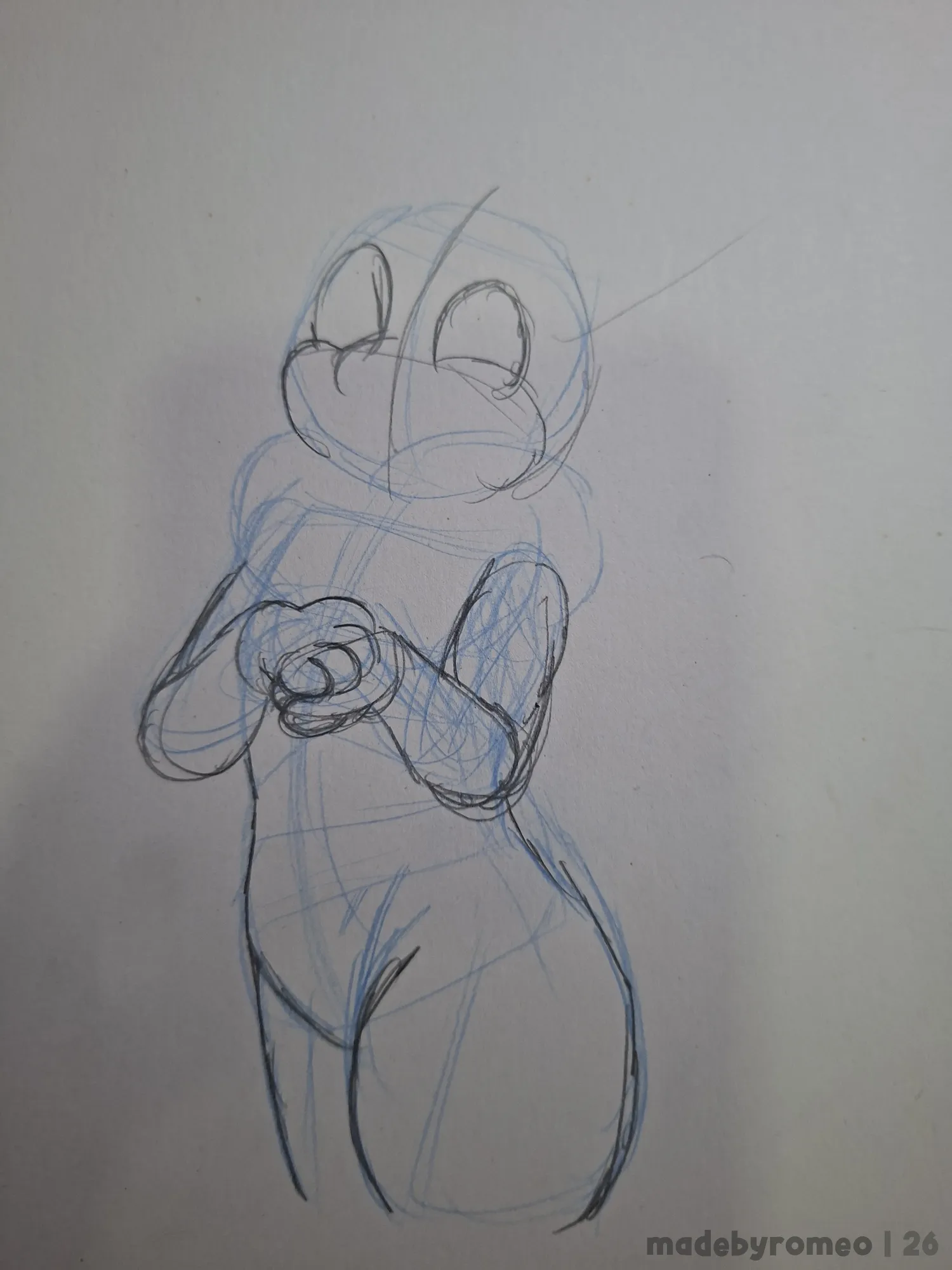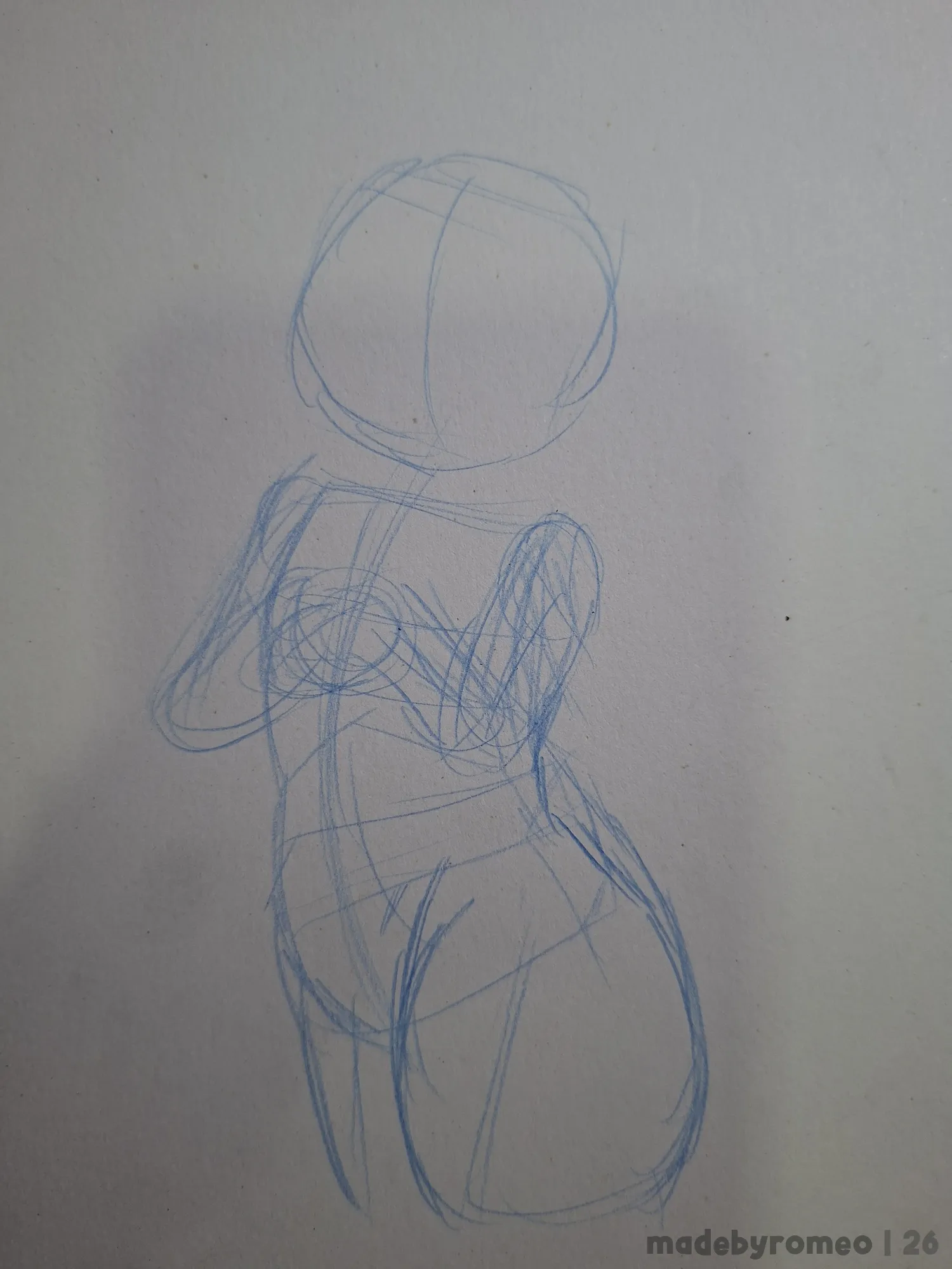 Comecei o desenho como sempre: Com as primeiras linhas e formas da pose e depois, fui refinando ela. Eu já via bastante potencial nesse desenho.