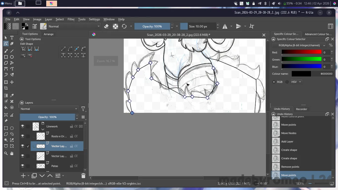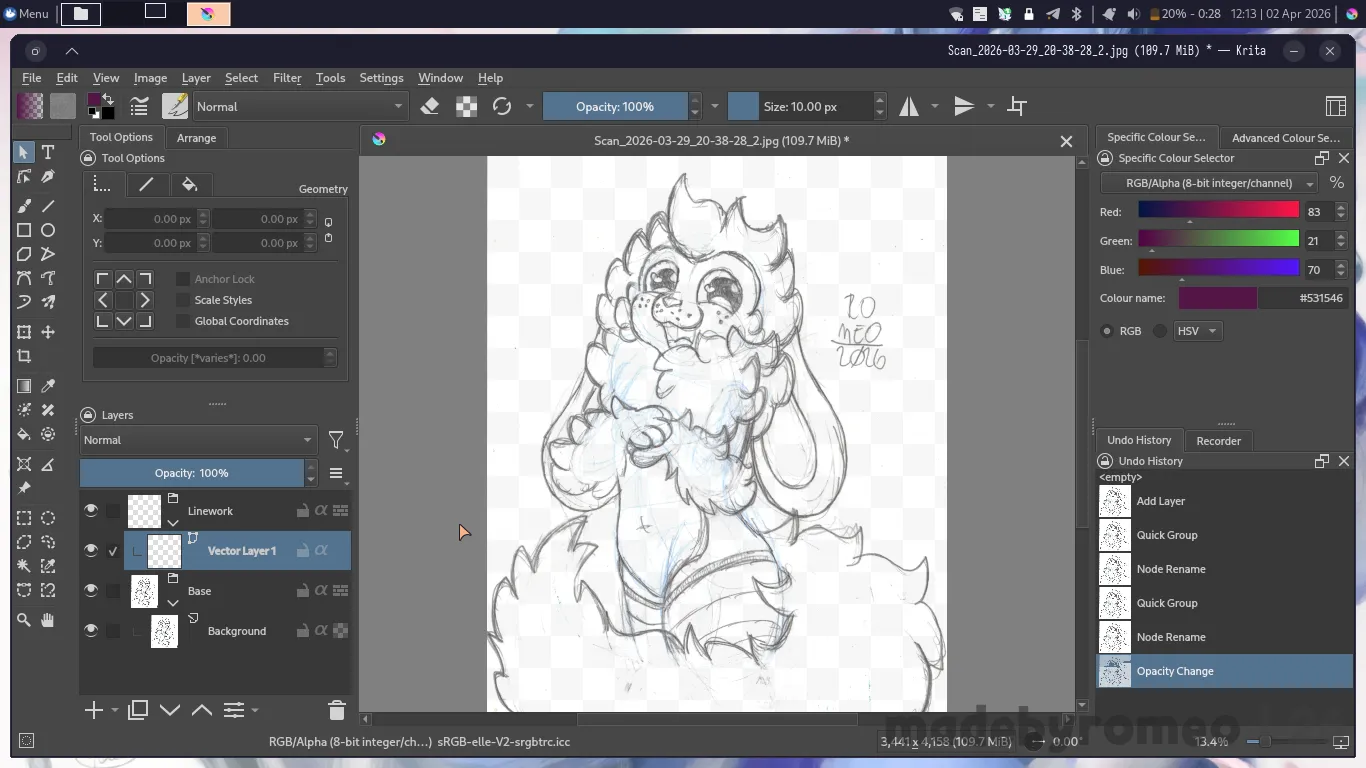 Eu poderia ter publicado esse desenho antes, e fiquei um tempo pensando se eu deveria digitalizar ou não. Mas decidi por digitalizar o desenho. Assim, comecei organizando as camadas no Krita.