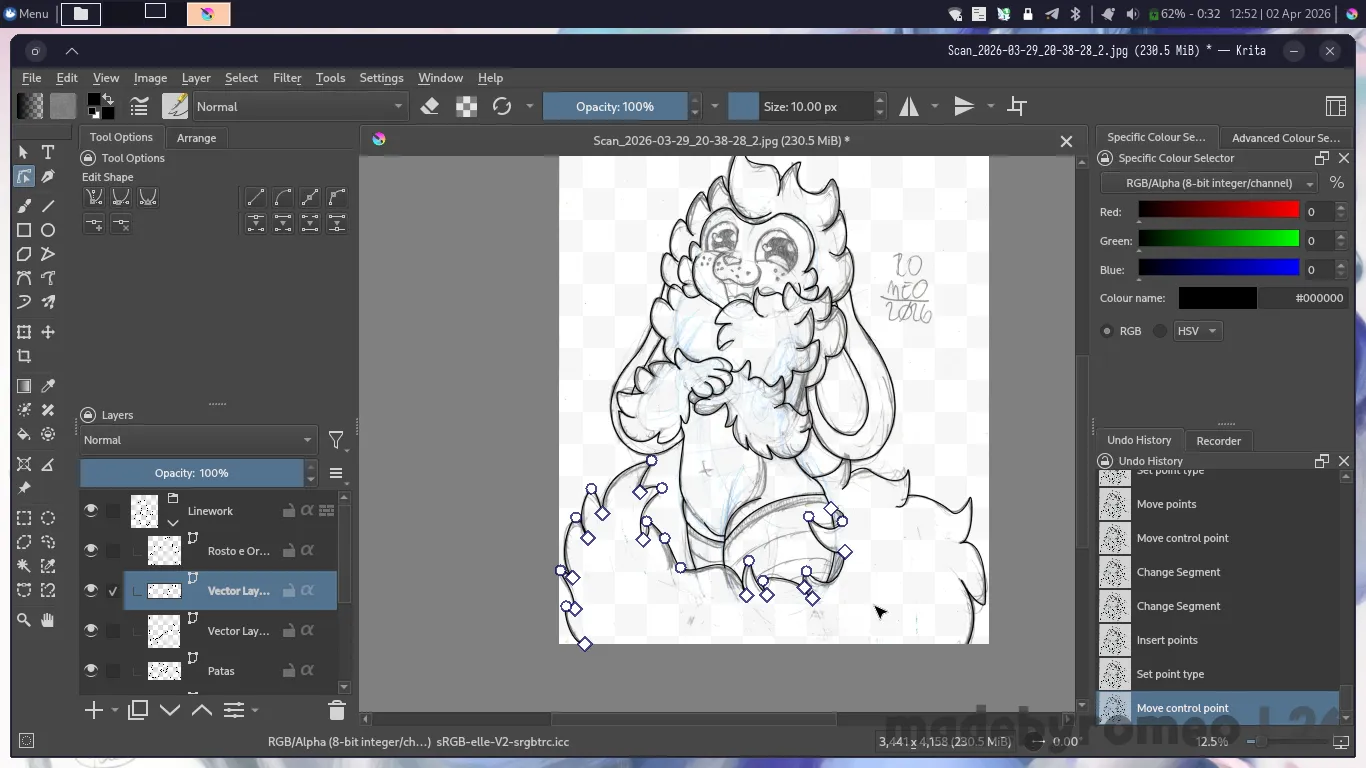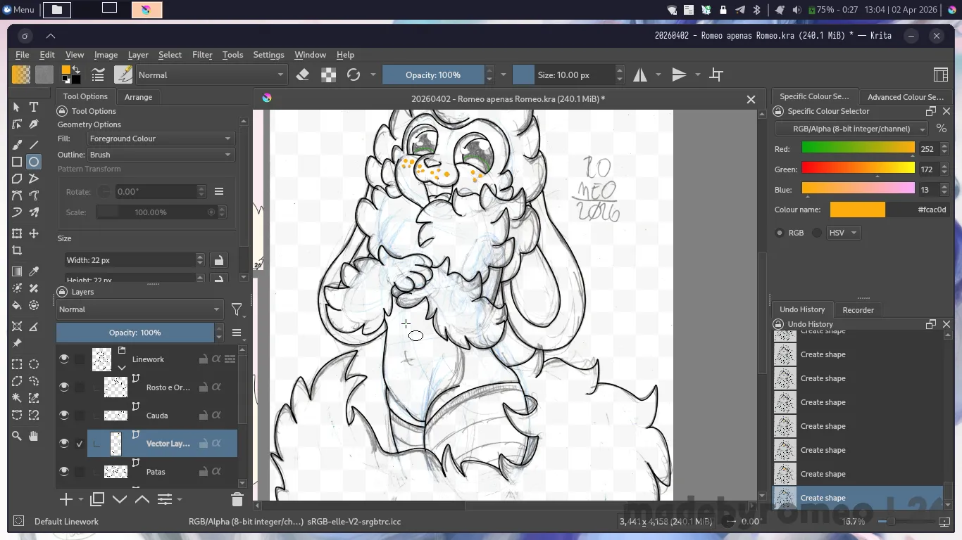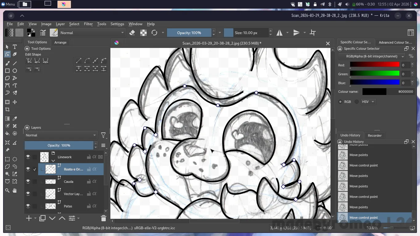 E depois, avancei na digitalização. Fiz as orelhas, as patas, os pelos das patas, a marca do rosto e os pelos das bochechas.