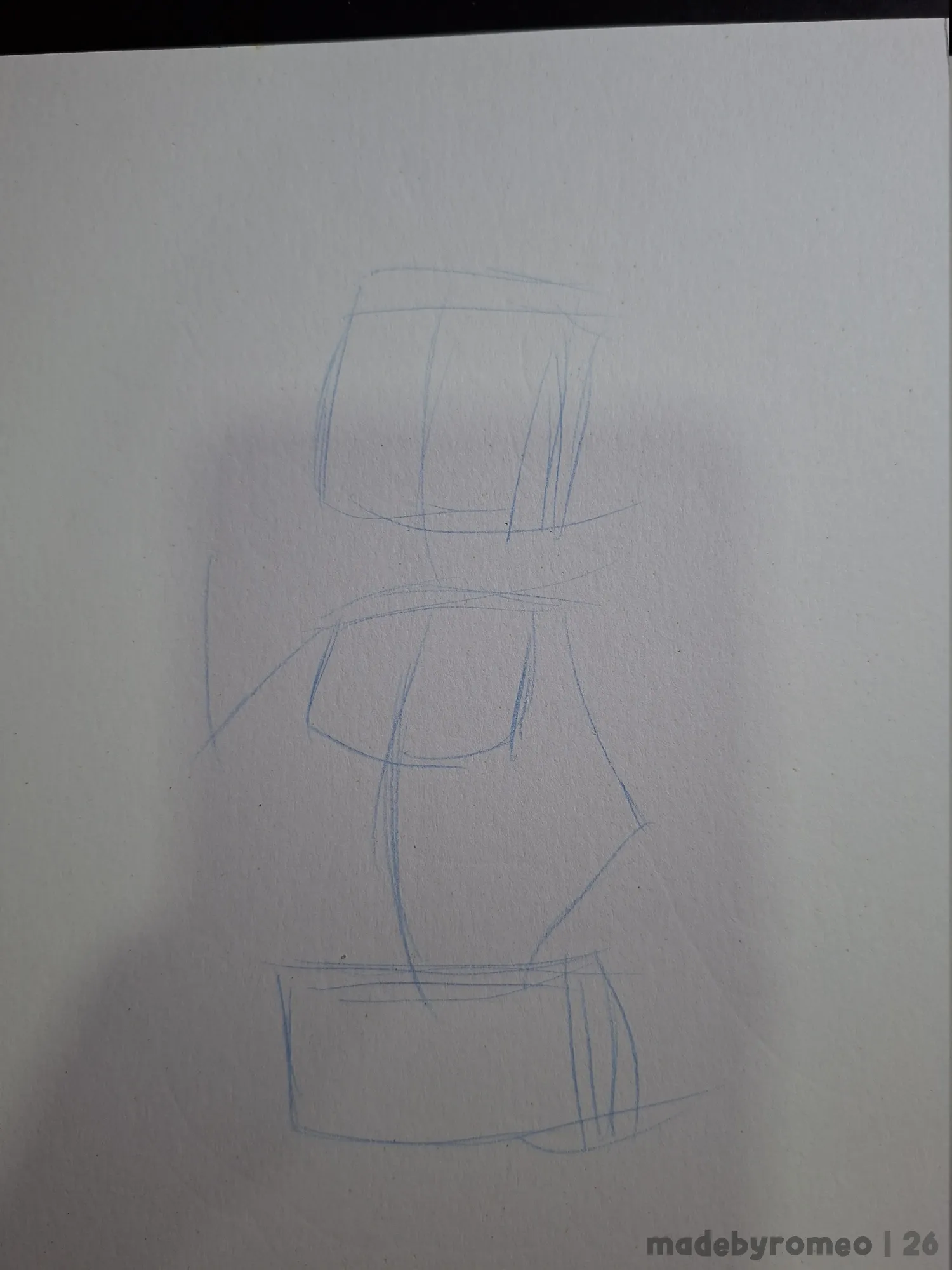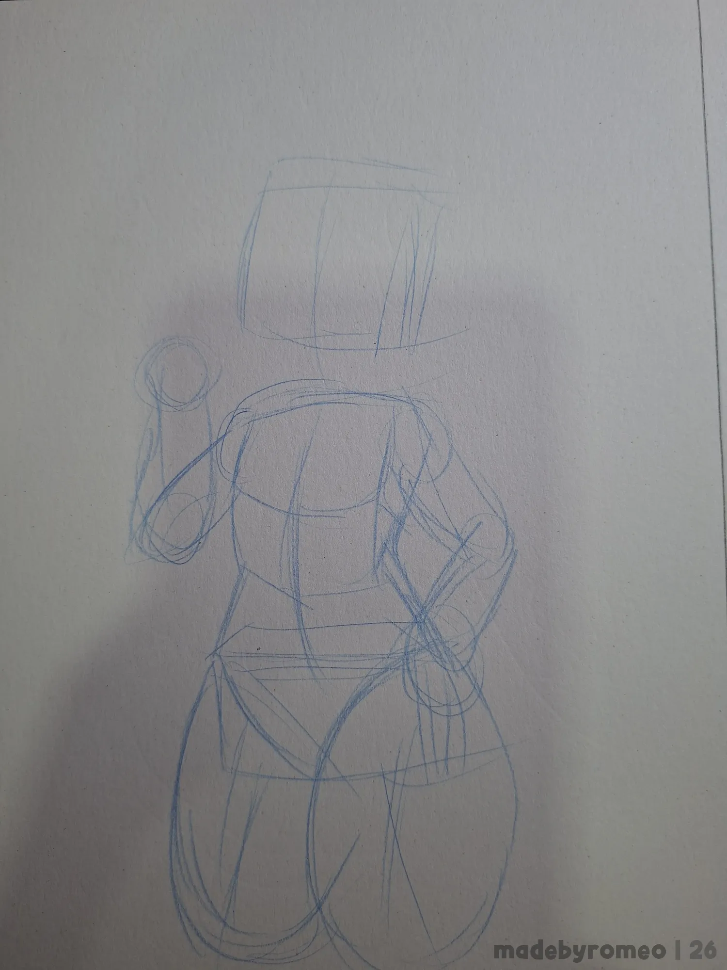 Avancei mais um pouco no desenho, onde fiz os pelos da cabeça e fiz as linhas das meias dele. A ideia inicial era justamente essa: Ele estar com as meias dele…