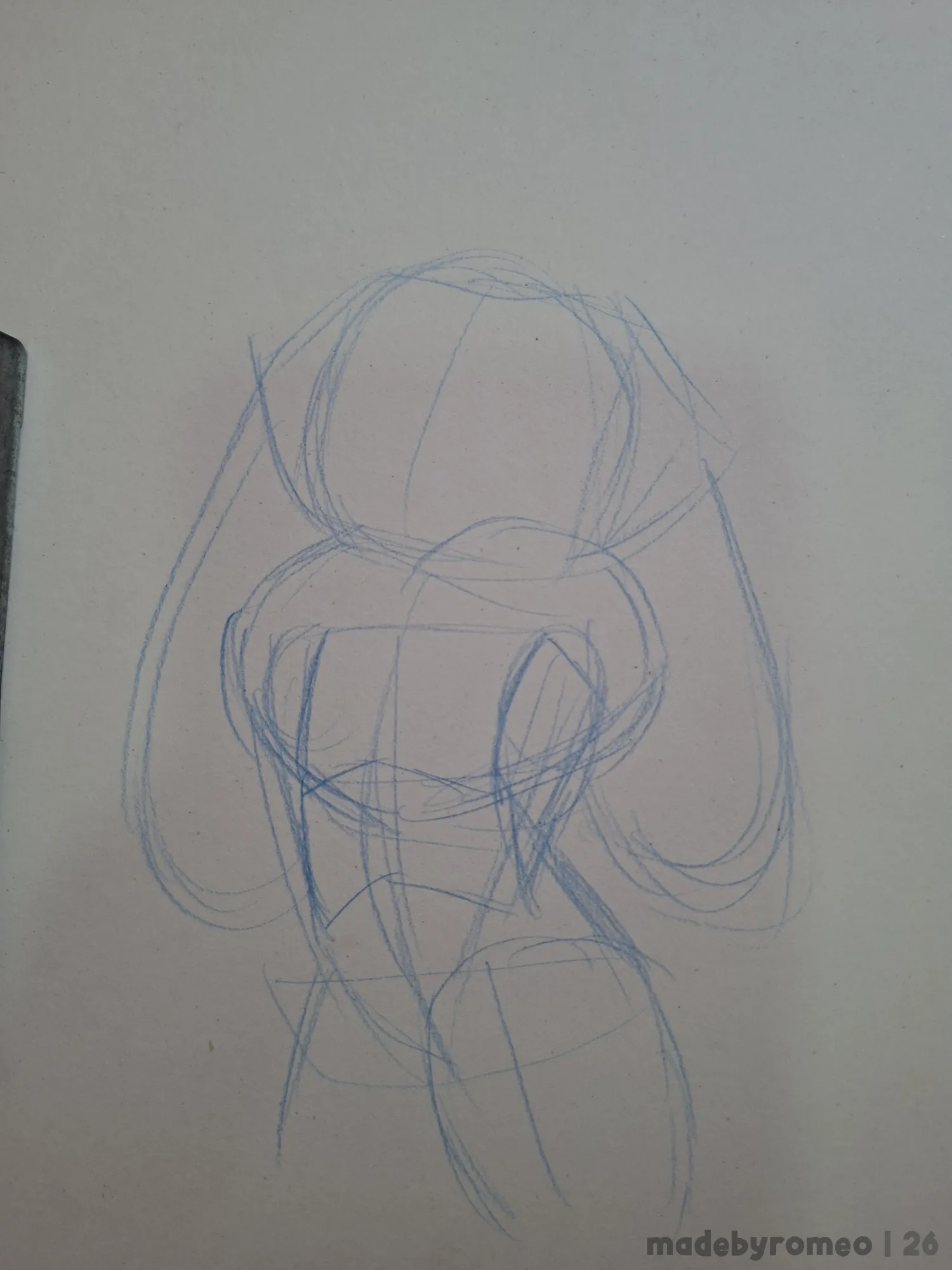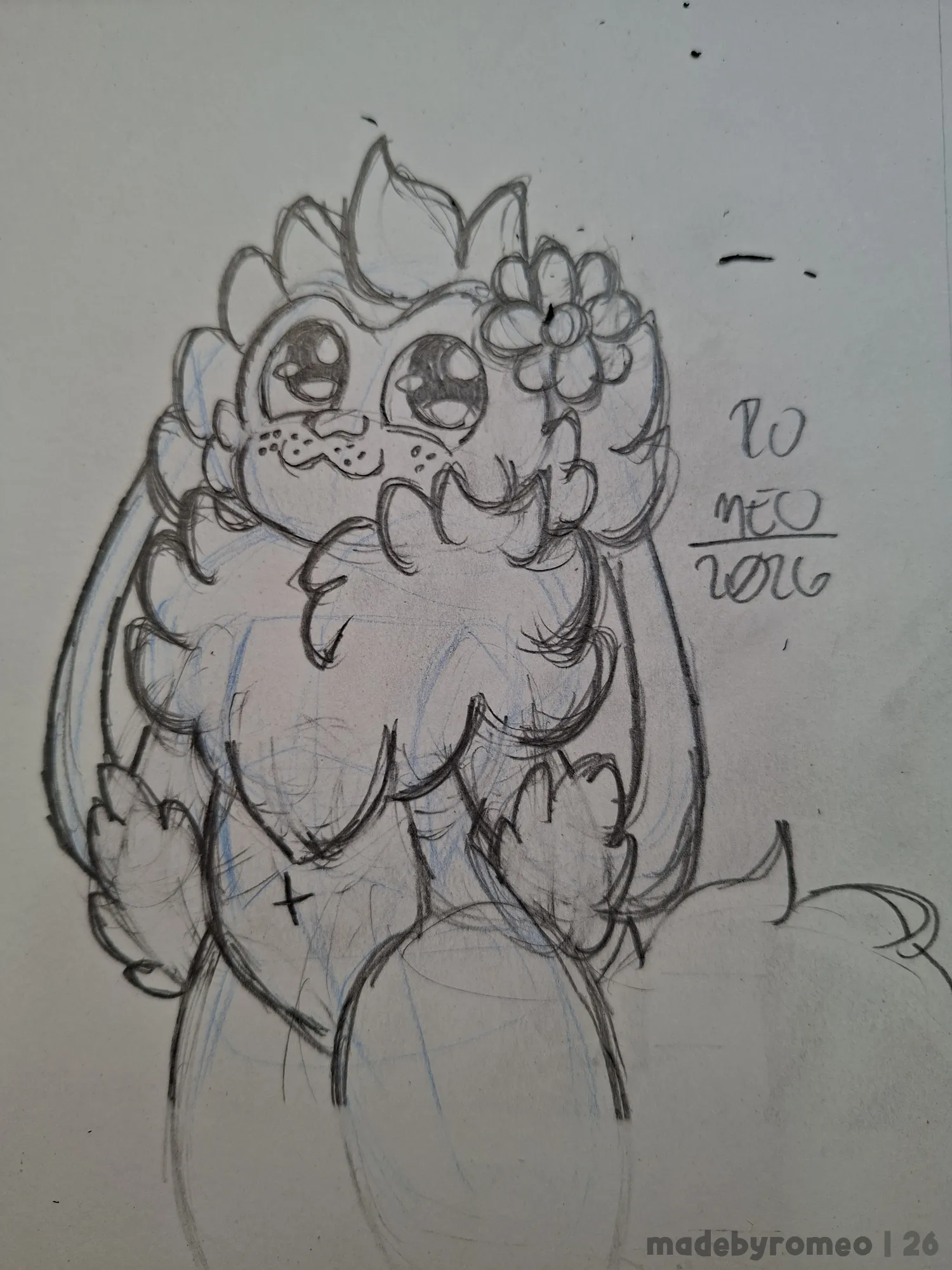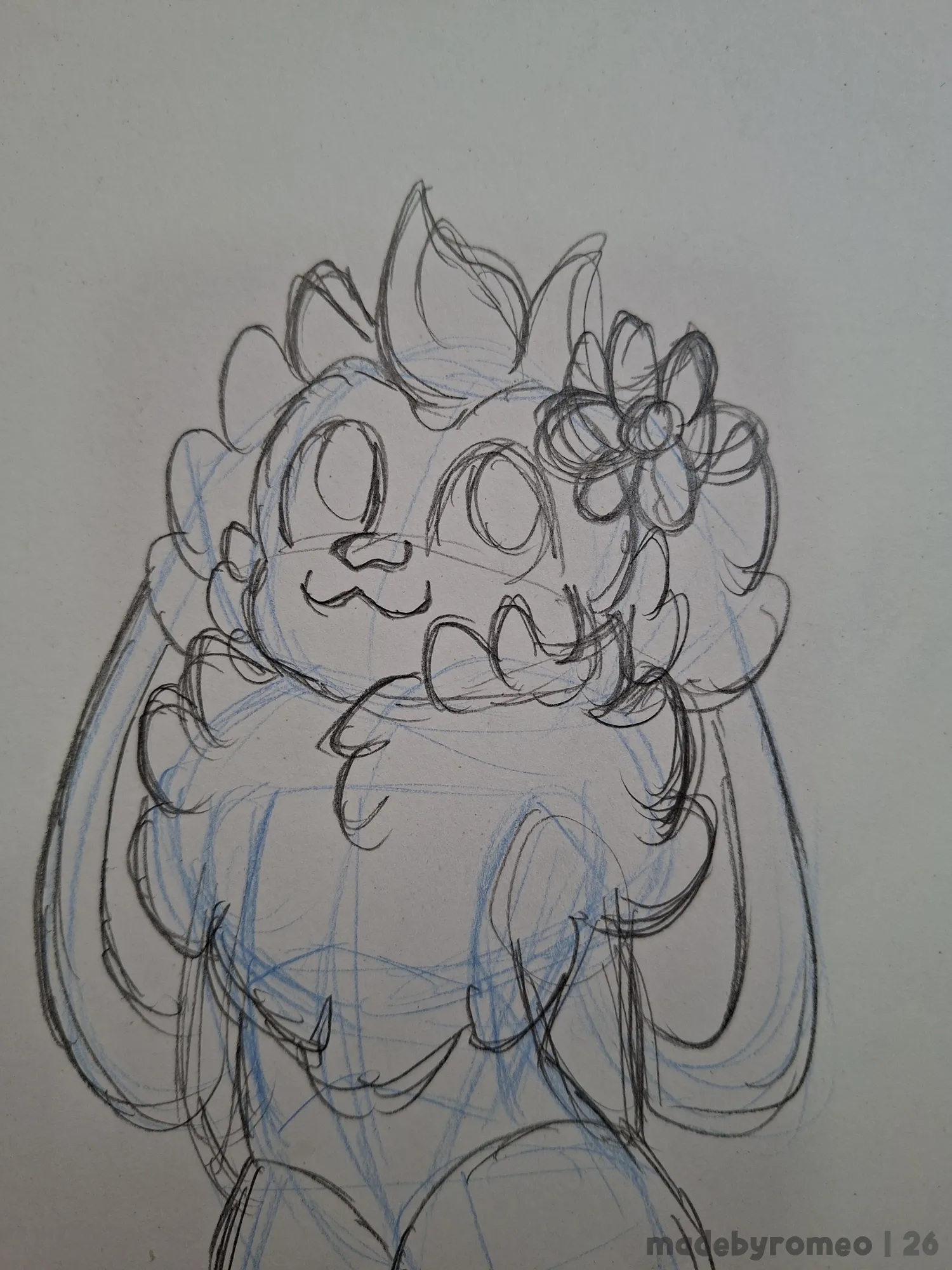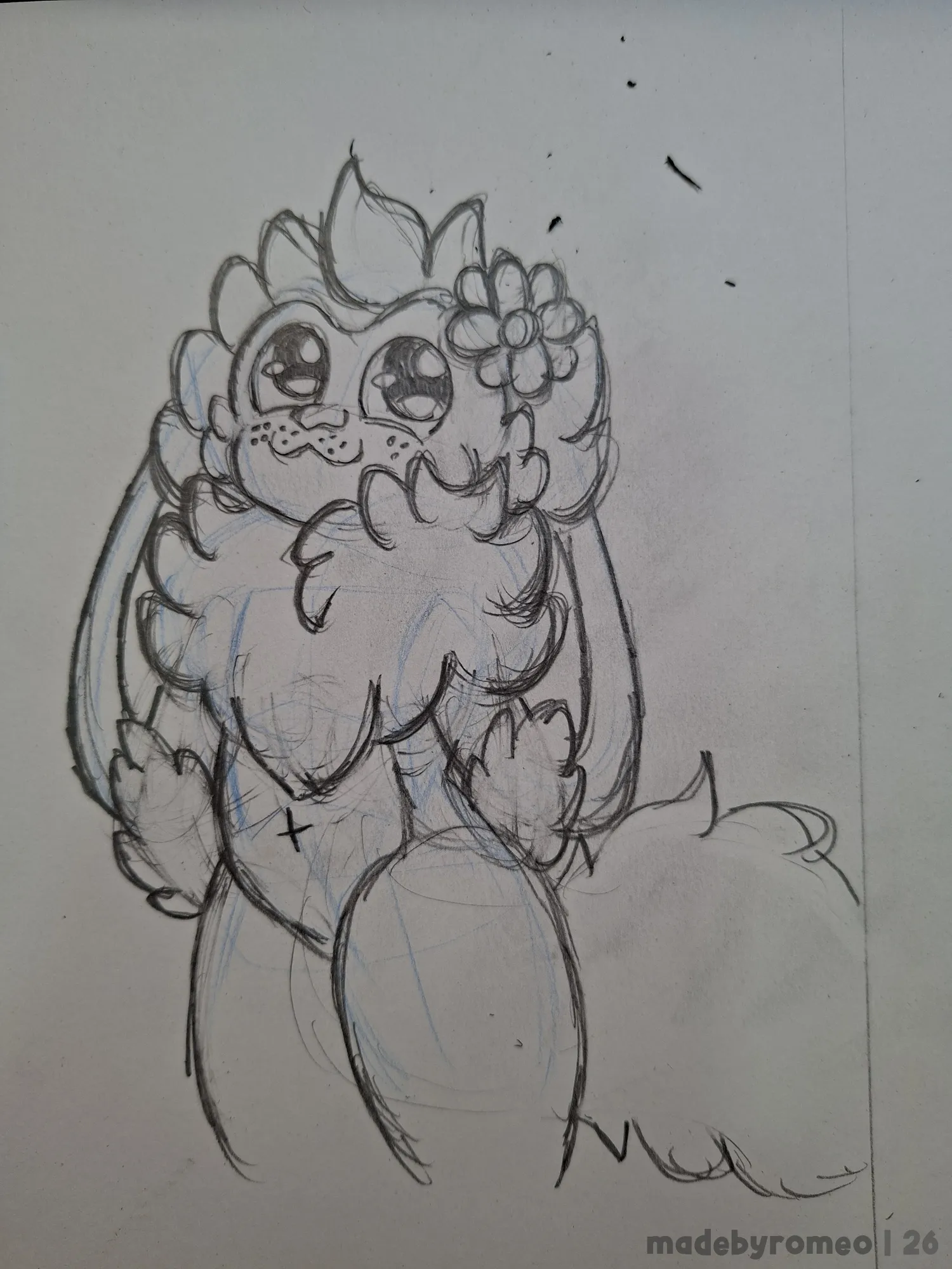 Com isso, decidi fazer um deseno do Romeo, com uma flor na cabeça.