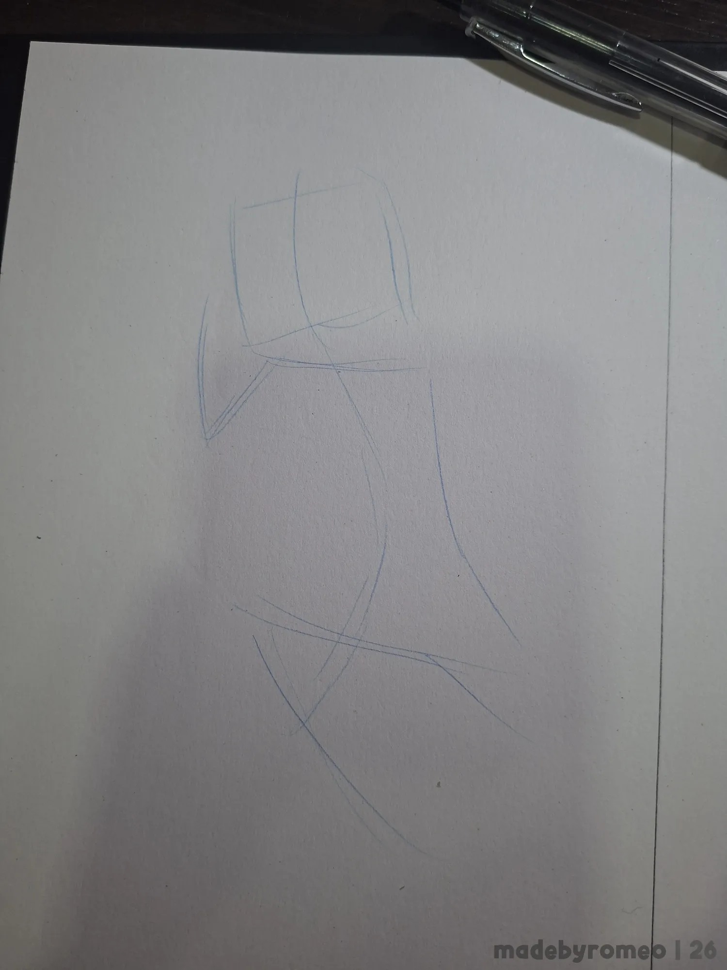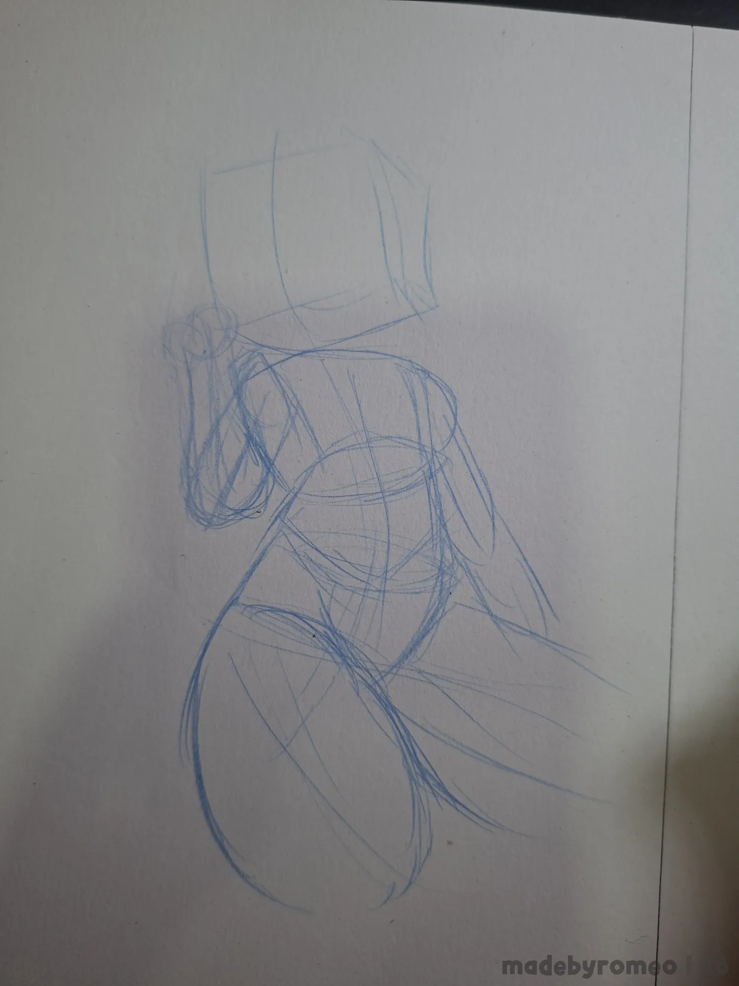 Comecei o desenho como sempre: com as primeiras linhas e formas da pose e depois, refinando a pose. Realmente gostei dessa pose nesse ponto.