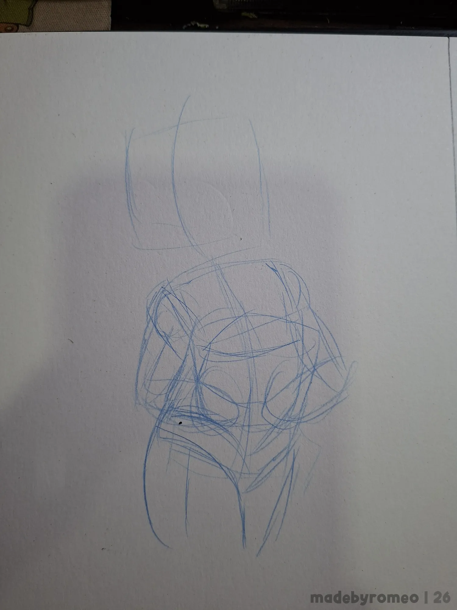 Comecei o desenho com as primeiras formas do desenho e depois fazendo o desenho tomar forma, e já estava gostando. E poderia fazer qualquer um dos meus personagens…