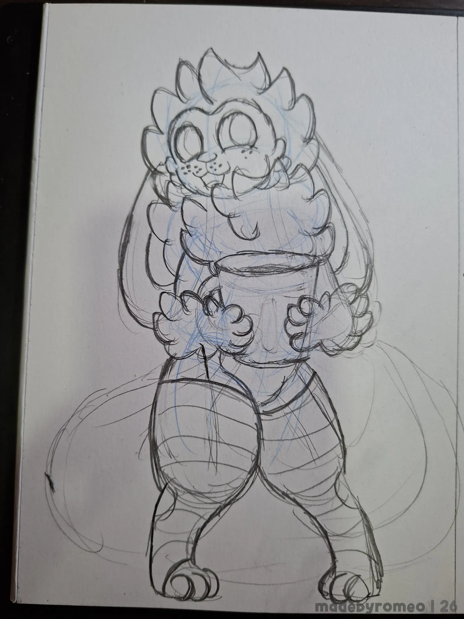 E esse é um desenho que gostei bastante de fazer. Apesar de que tem coisas que vejo que poderiam ser melhores, como a posição da pata que está perto da alça. Pelo tamanho da xícara, talvez ela poderia estar passando por dentro da alça.