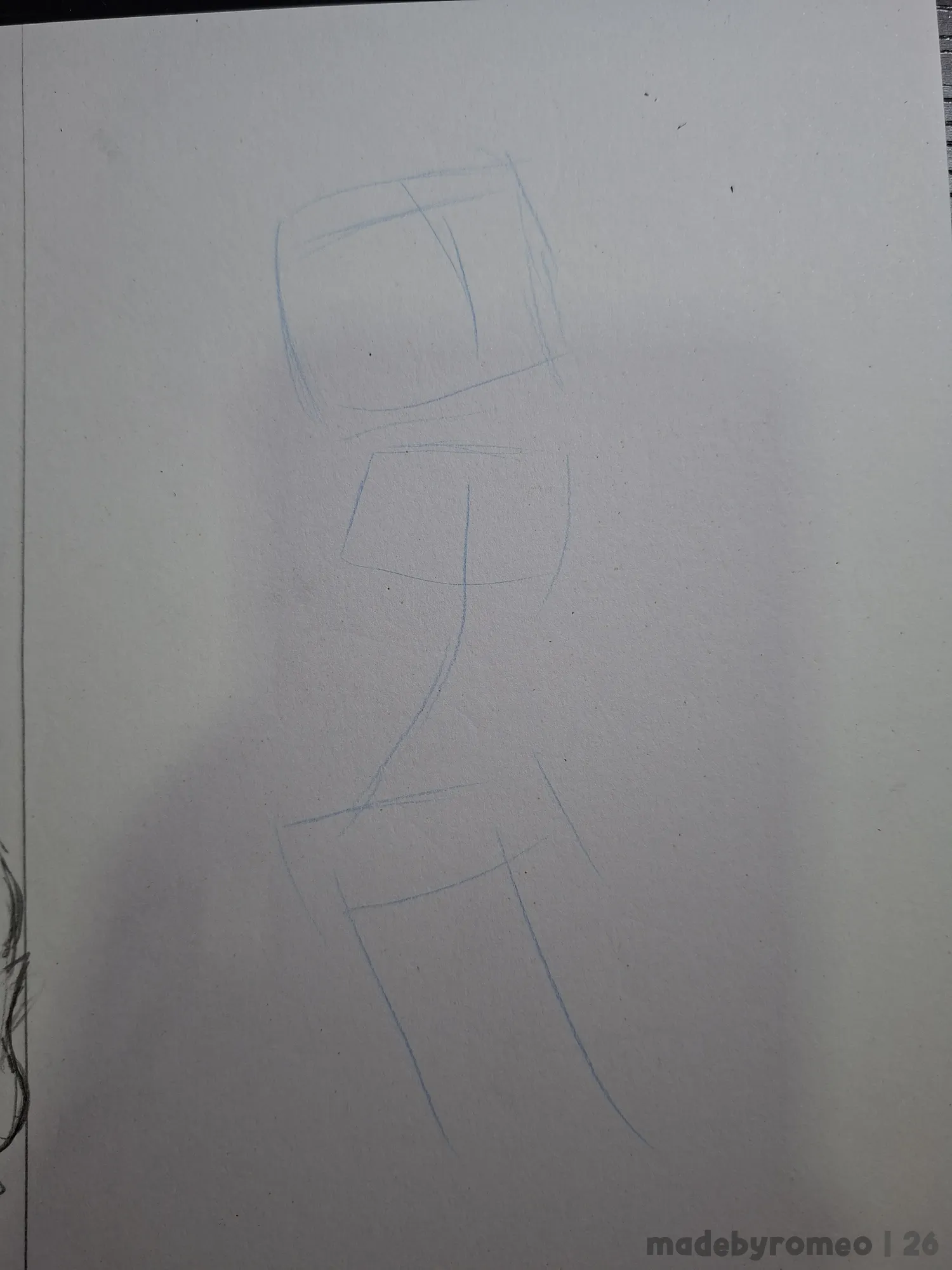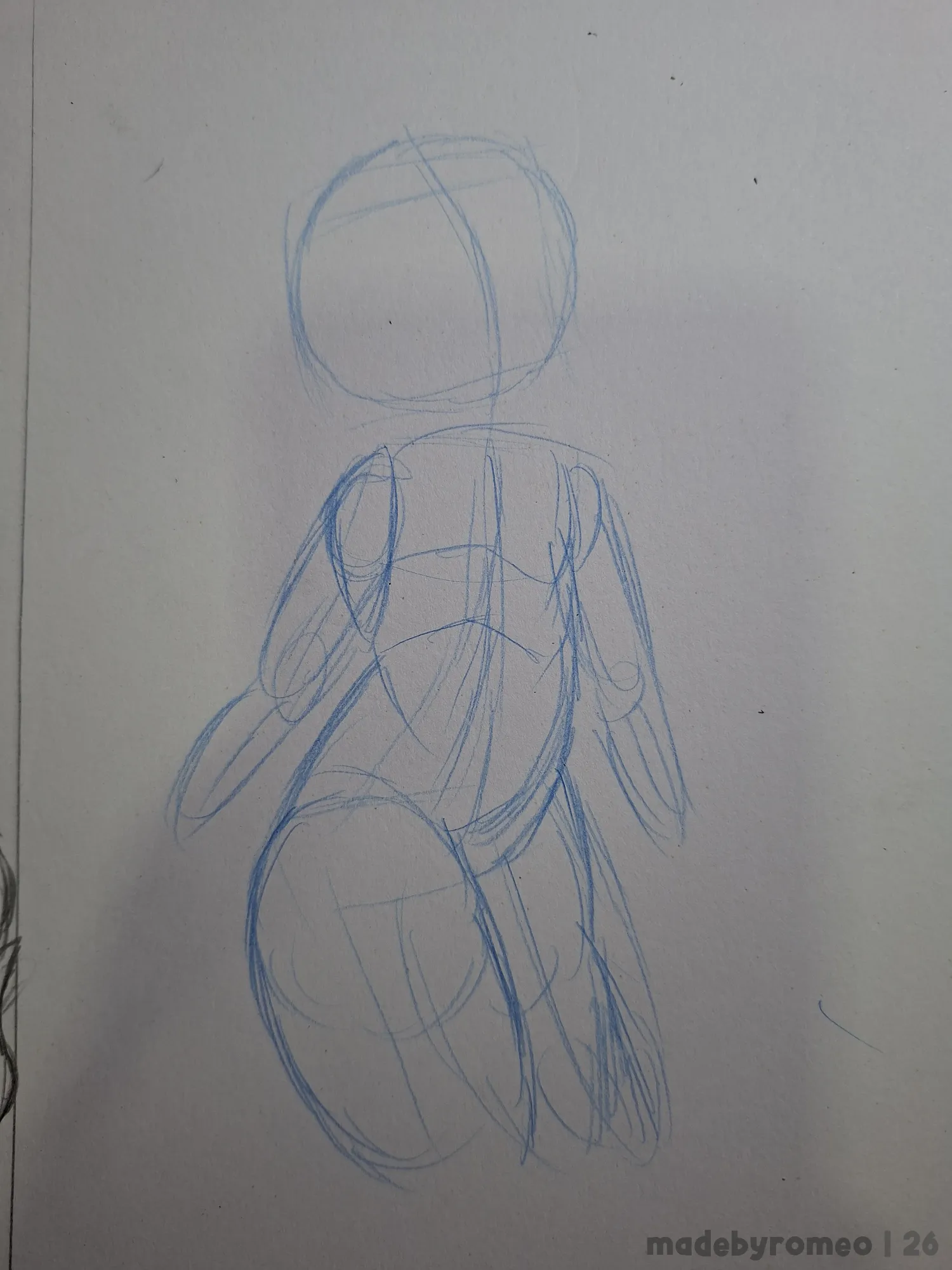 Comecei o desenho como sempre: Com as primeiras formas e linhas da pose. E até que vi um certo potencial nesse desenho, então continuei a polir as formas. Até que eu estava gostando da pose.