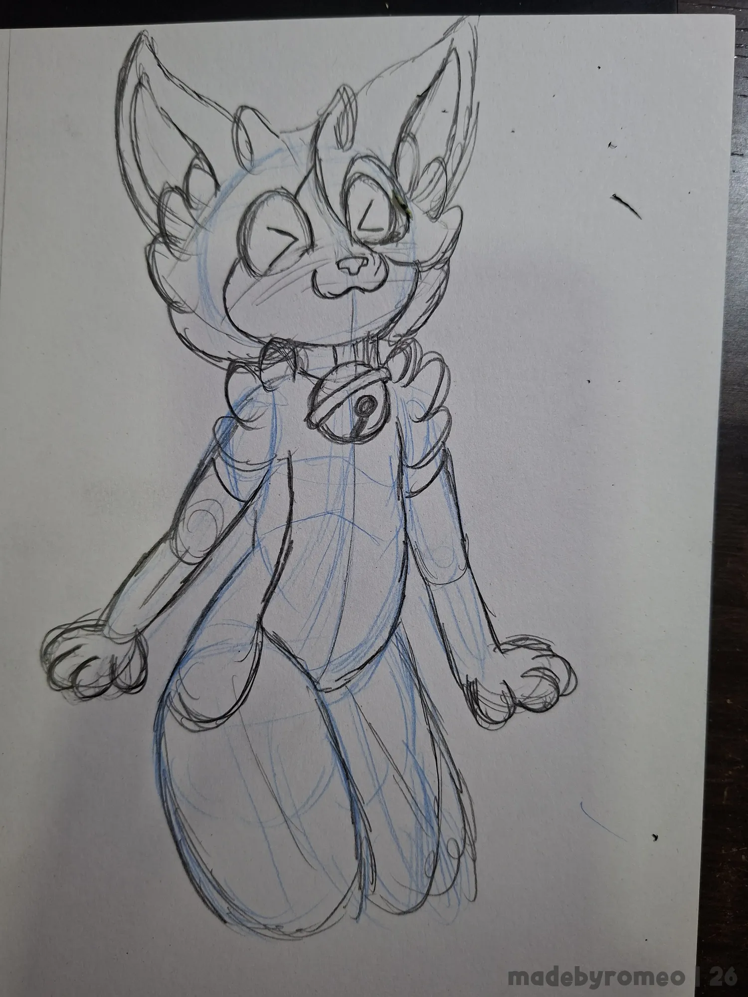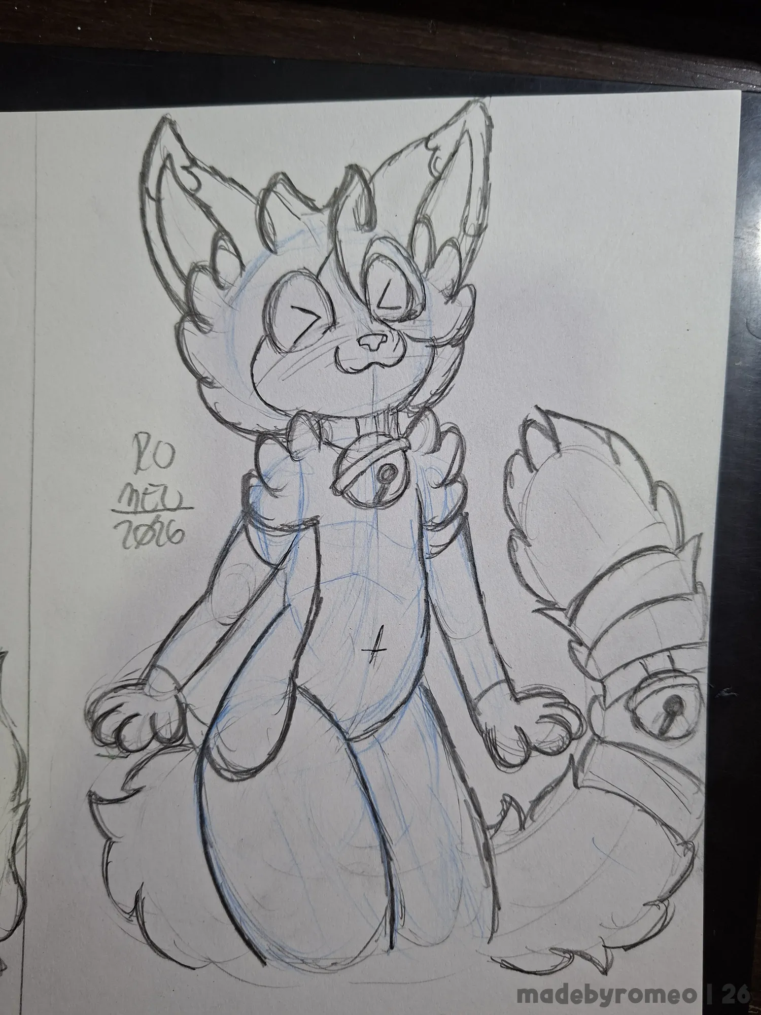 E prossegui no desenho, decidindo fazer o Mocha. Resolvi fazer ele bem relaxado, com os olhos fechados, como se ele estivesse aproveitando um bom momento. Assim, fiz a cauda, apaguei os traços em excesso e reforcei os principais e finalizei o desenho.