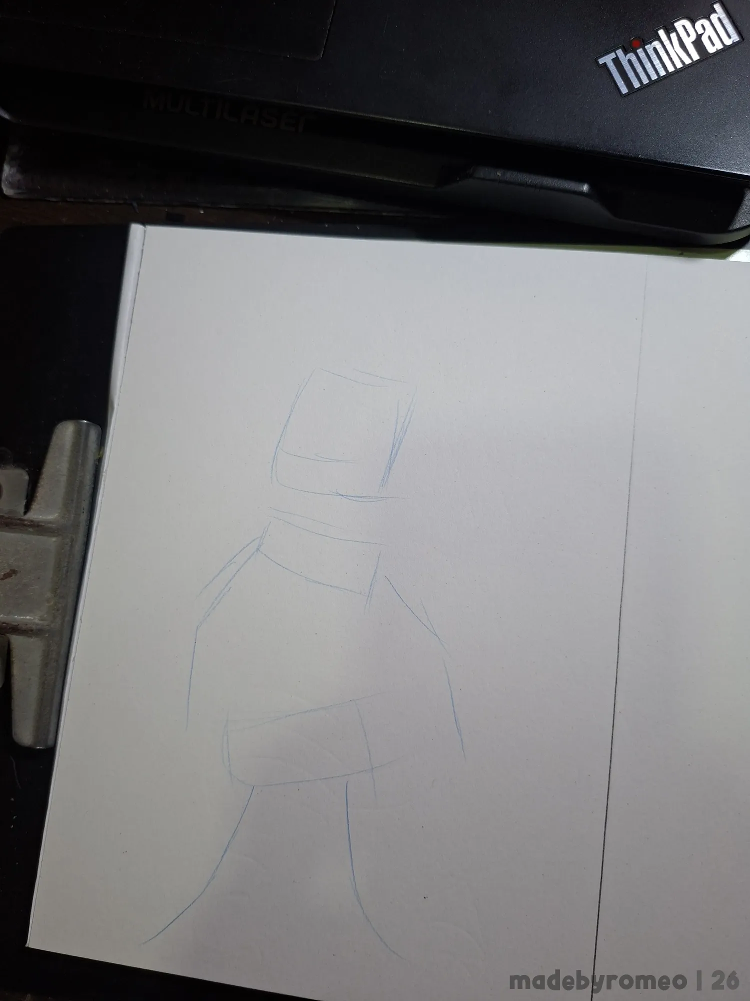 Depois, avancei bastante no desenho, reforçando os traços principais do desenho e depois, apaguei os traços em excesso.