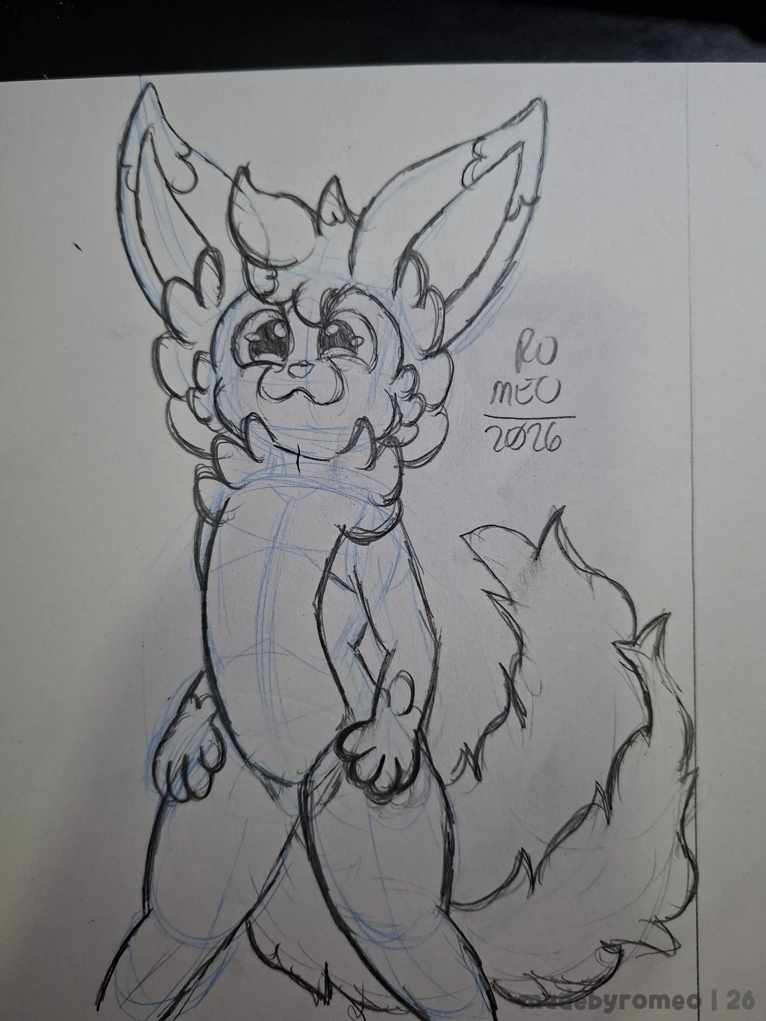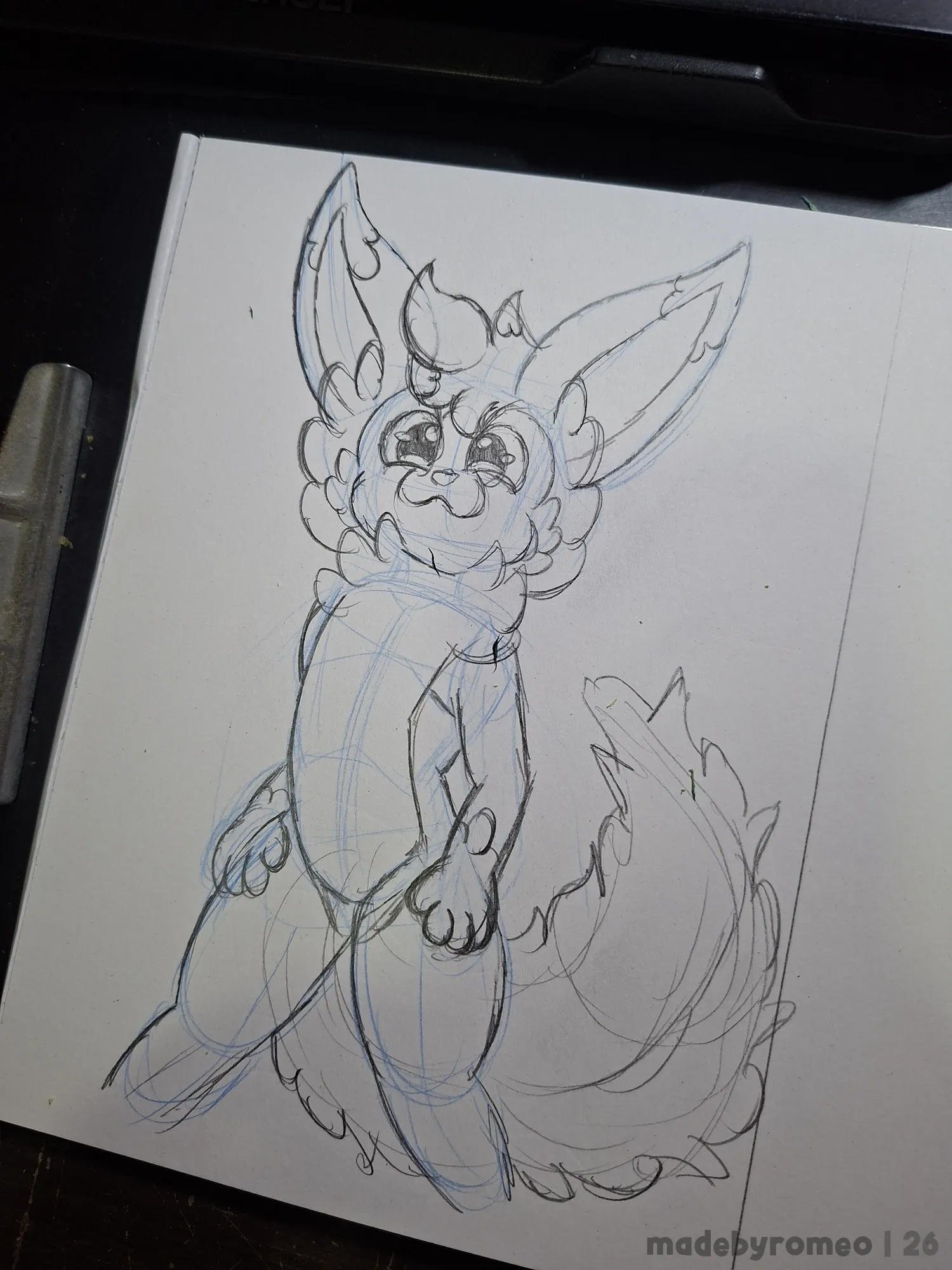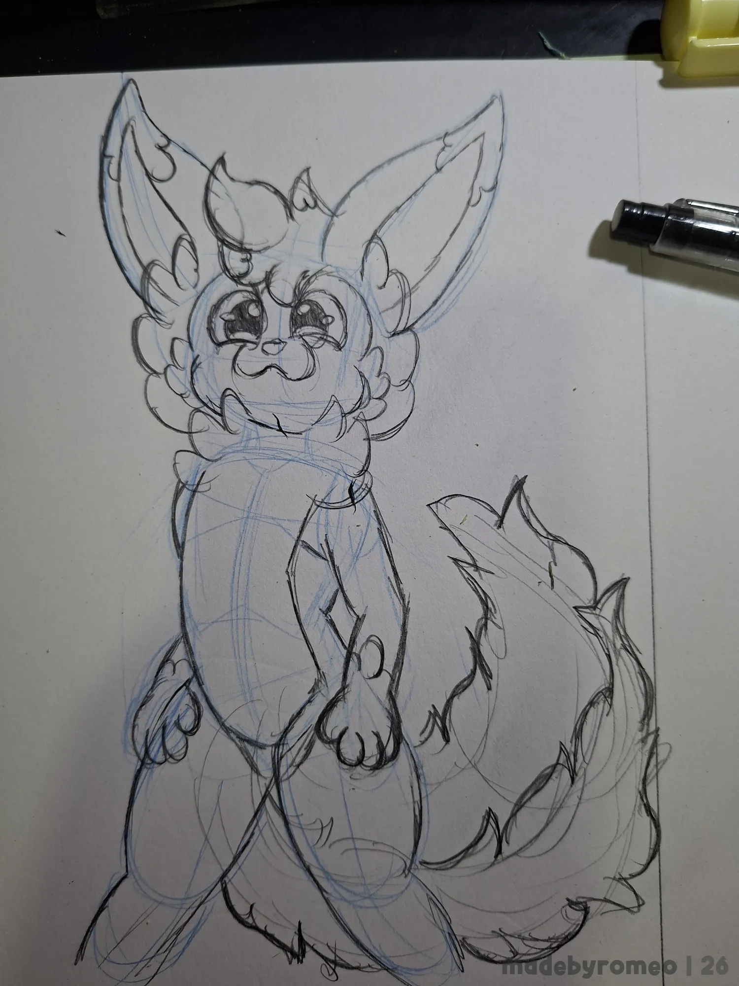 Comecei o desenho como sempre: Com as primeiras linhas e formas da pose. Assim, decidi em fazer o Sweet e foi o que fiz: dei forma a ele. E eu simplesmente adorei como ele ficou nesse esboço.