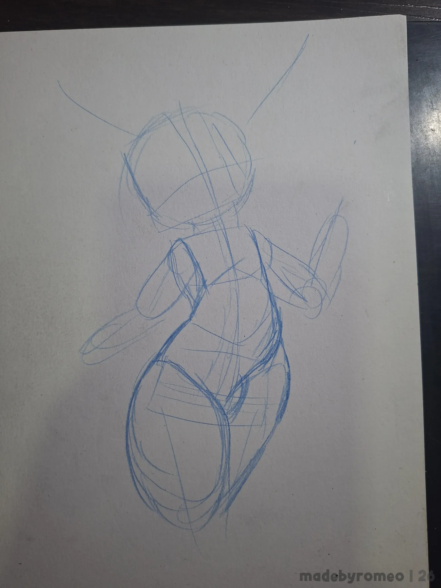 Comecei o desenho como sempre: As primeiras formas da pose. Eu estava gostando bastante de como o desenho estava ficando. Com isso, comecei a refinar a pose, e estava gostando bastante de como ela estava ficando.