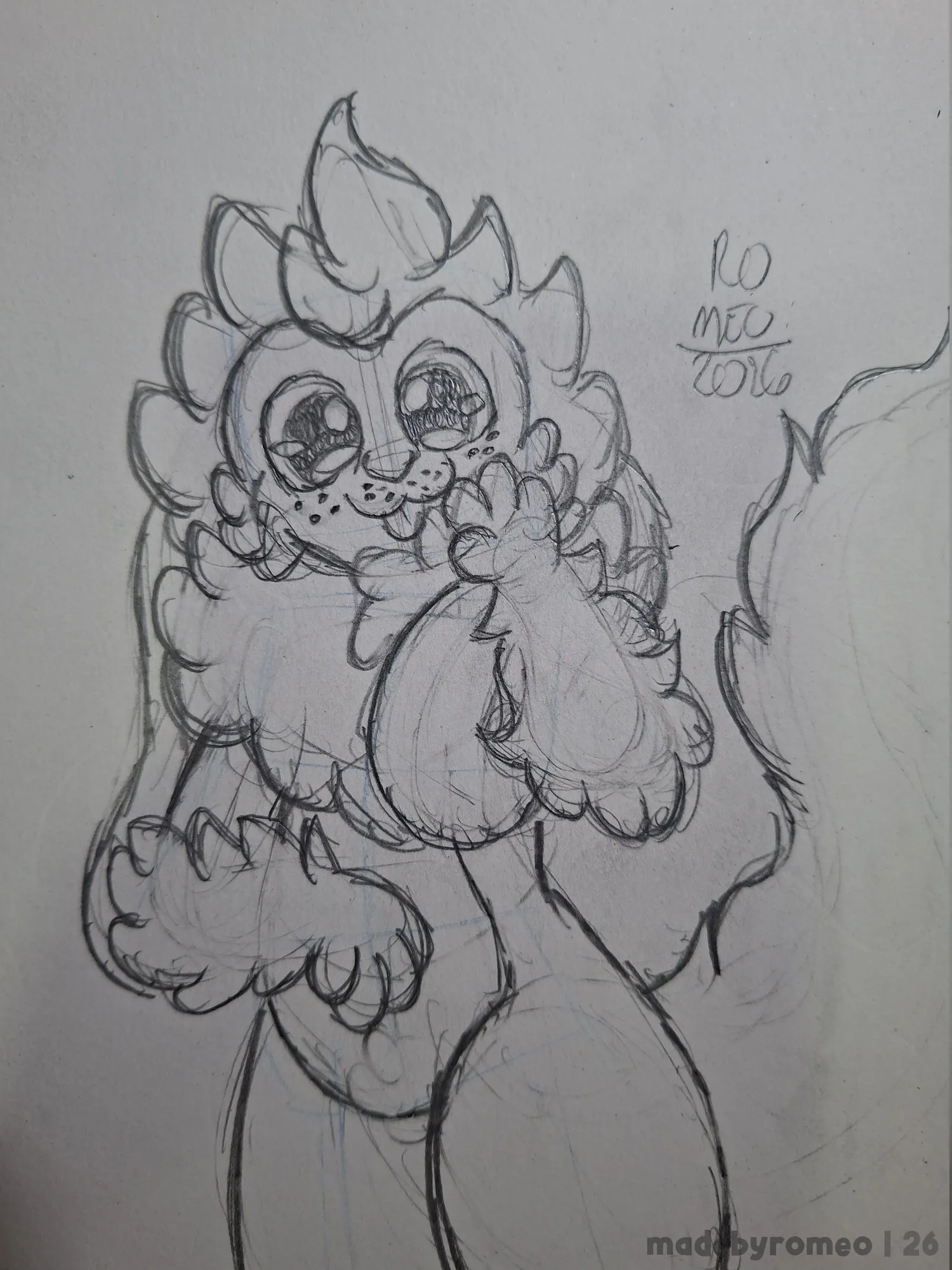 Mas depois de fazer esse rascunho a esmo, refinei melhor o desenho. Ficou ainda mais adorável, e simplesmente amei isso, e reforcei os traços principais do desenho. Depois, fiz a cauda e apaguei os traços em excesso, finalizando o desenho.