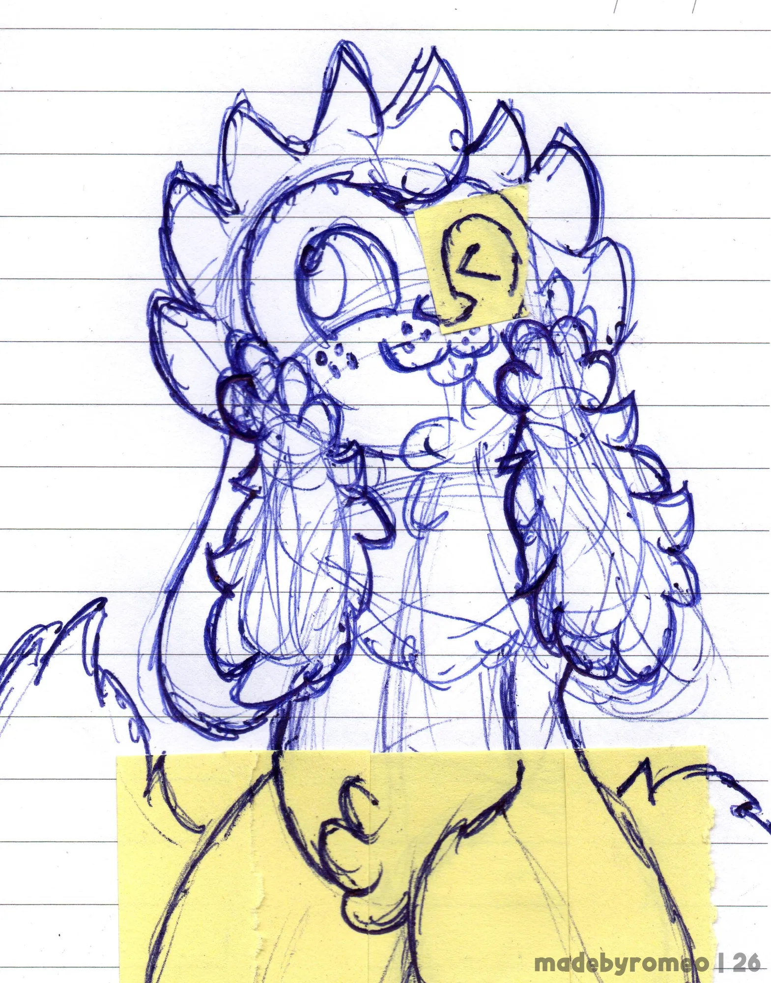 Mais um daqueles Doodles, que pra mim ficou absolutamente adorável. Eu havia gostado muito de como ele havia ficado inicialmente, porém, fiz algumas correções nele (por isso os Post-it amarelos nas coxas e no olho) e para mim, foi um acerto.