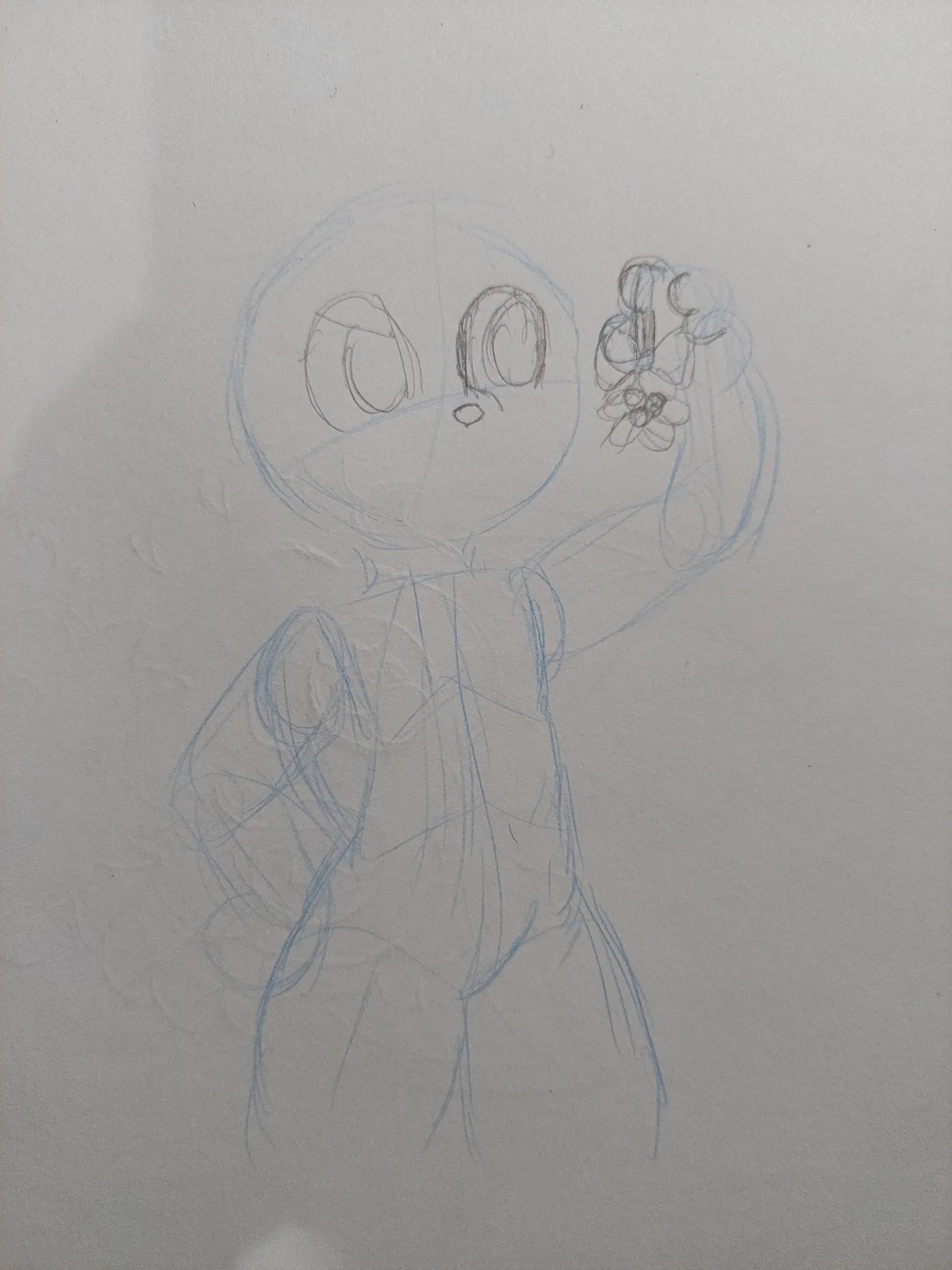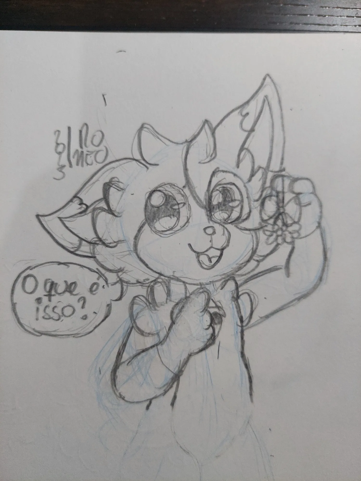 Eu achei essa ideia muito adorável, e prossegui mais no desenho, onde apaguei os traços em excesso e reforcei os principais e pintei as pupilas dos olhos dele, assim finalizando esse desenho.