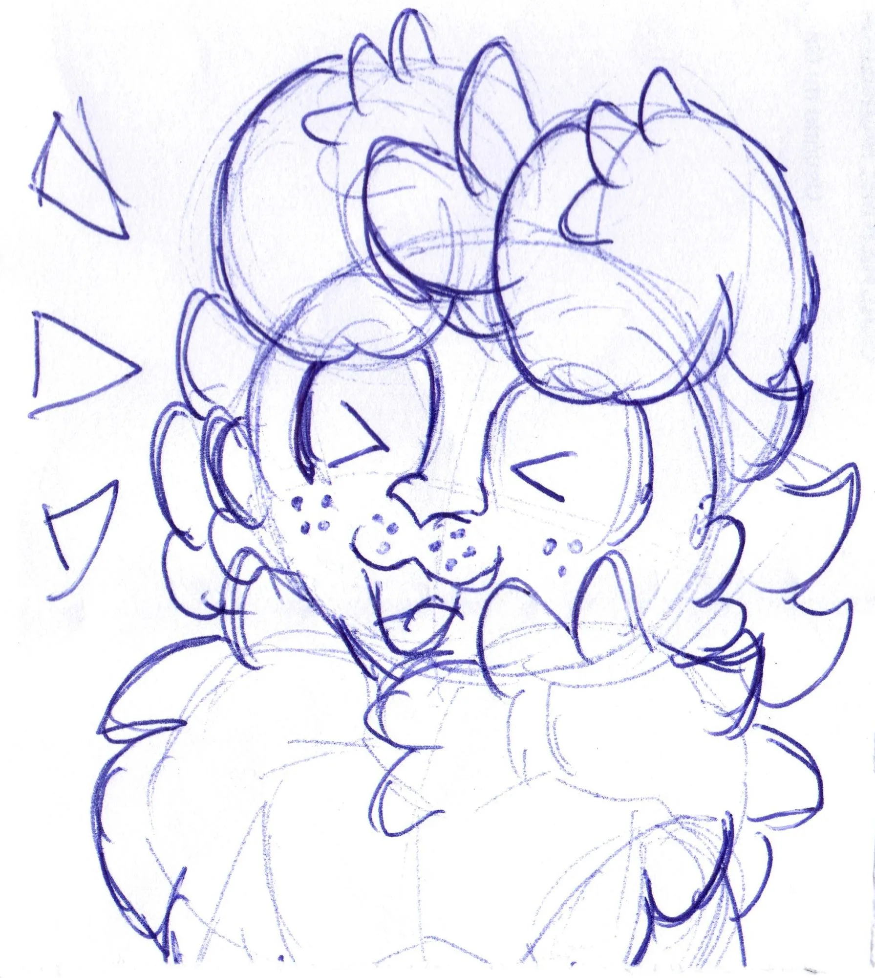 E depois, prossegui no desenho fazendo os pelos da cabeça e bochehcas, o braço e o colar de pelos do Romeo. Também, conforme eu modelo as linhas que quero, eu vou apagando os traços em excesso.