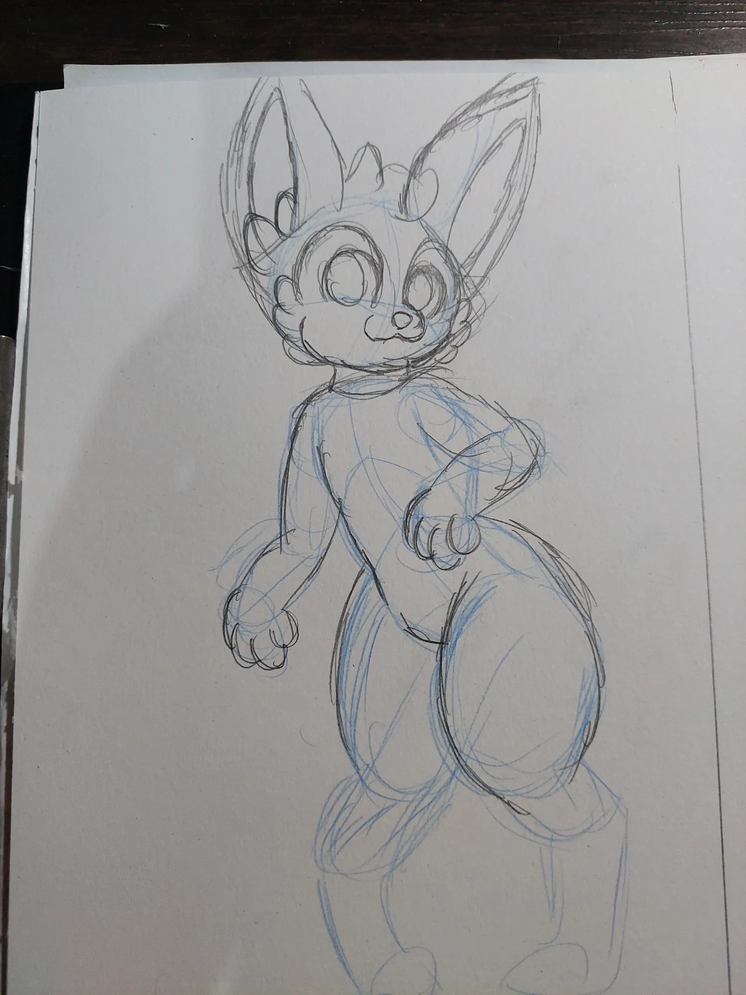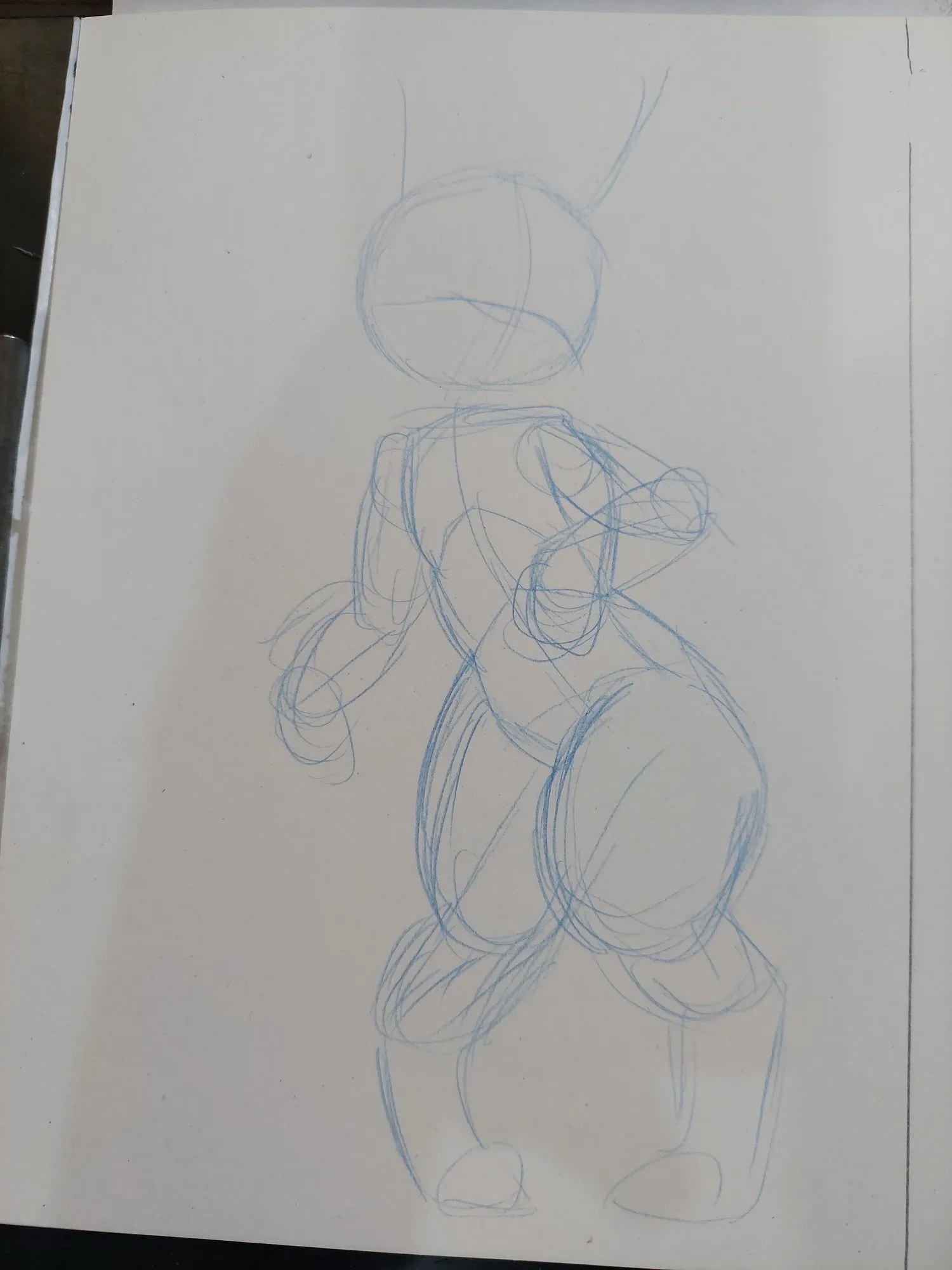 Comecei a fazer esse desenho com as primeiras linhas da pose e aqui eu segui parte da inspiração, mas no esboço, acabei indo um pouco além da inspiração, já que eu fiz uma continuidade das coxas do personagem.