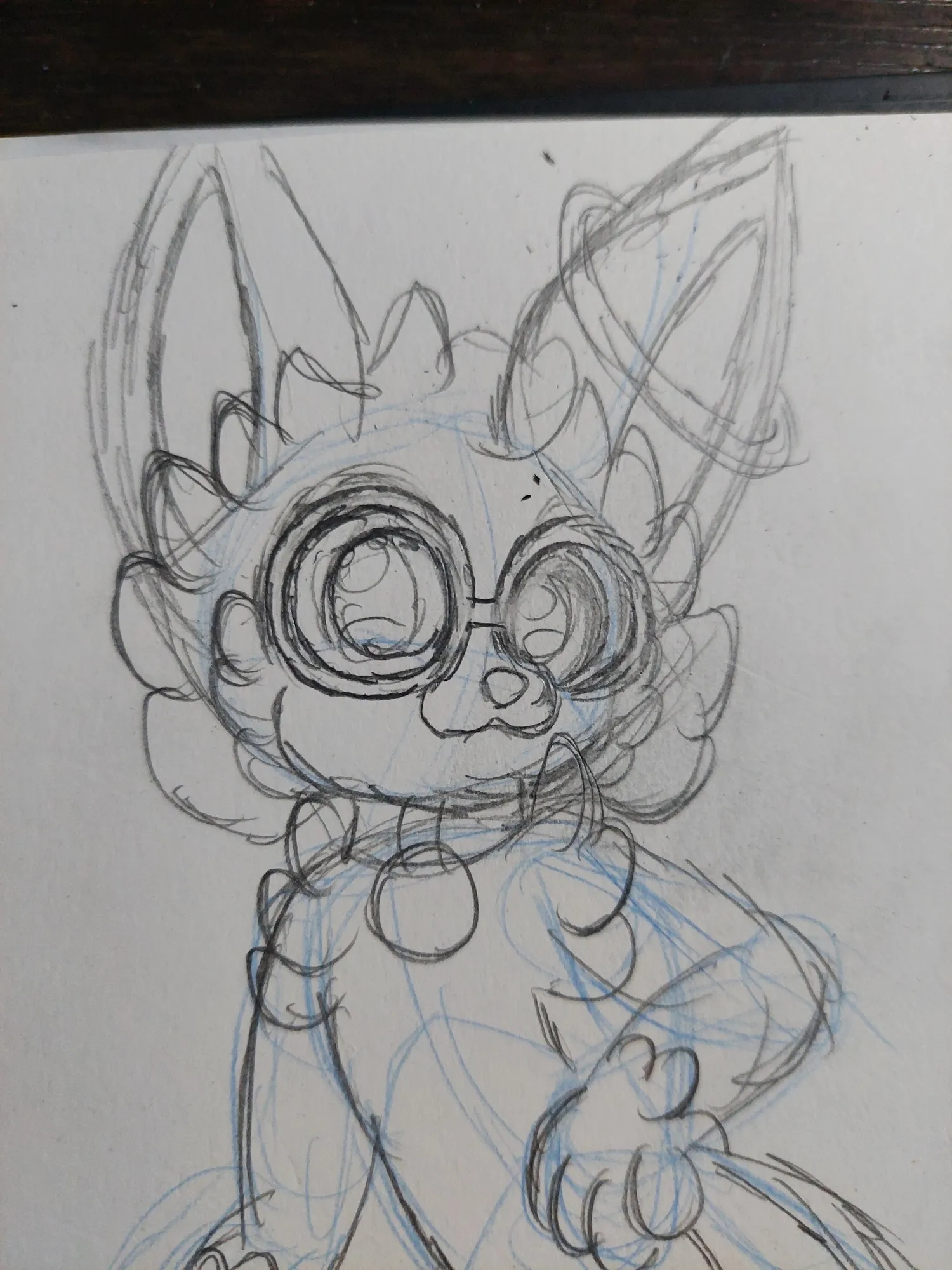 E aqui decidi pelo Angel. Sendo assim, comecei a dar forma ao desenho, onde fiz as orelhas, focinho, patas, braços, coxas e as marcas do rosto. Logo depois, fiz a aureola do Angel ao redor de uma das orelhas dele, os óculos e a coleira dele.