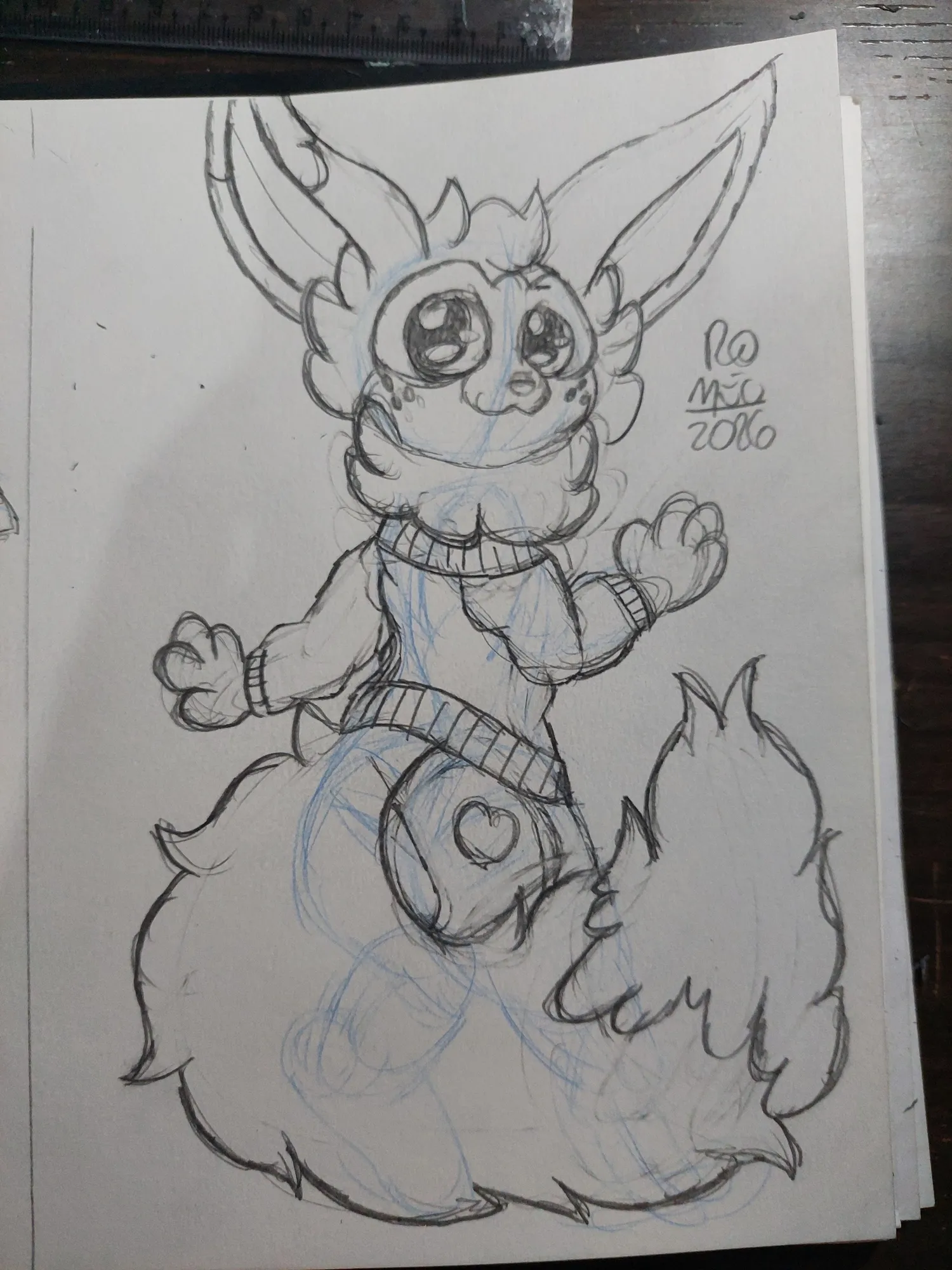 Eu poderia terminar o desenho. Mas decidi fazer o Suéter do Cannella, assim como eu fiz em um dos Doodles dele e que gostei bastante, e para mim poderia ser uma excelente oportunidade para ver como o suéter dele funcionaria com a cauda.