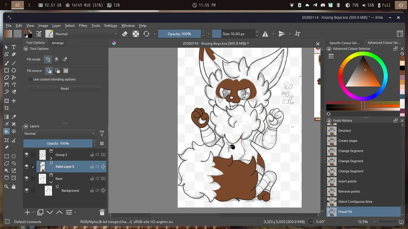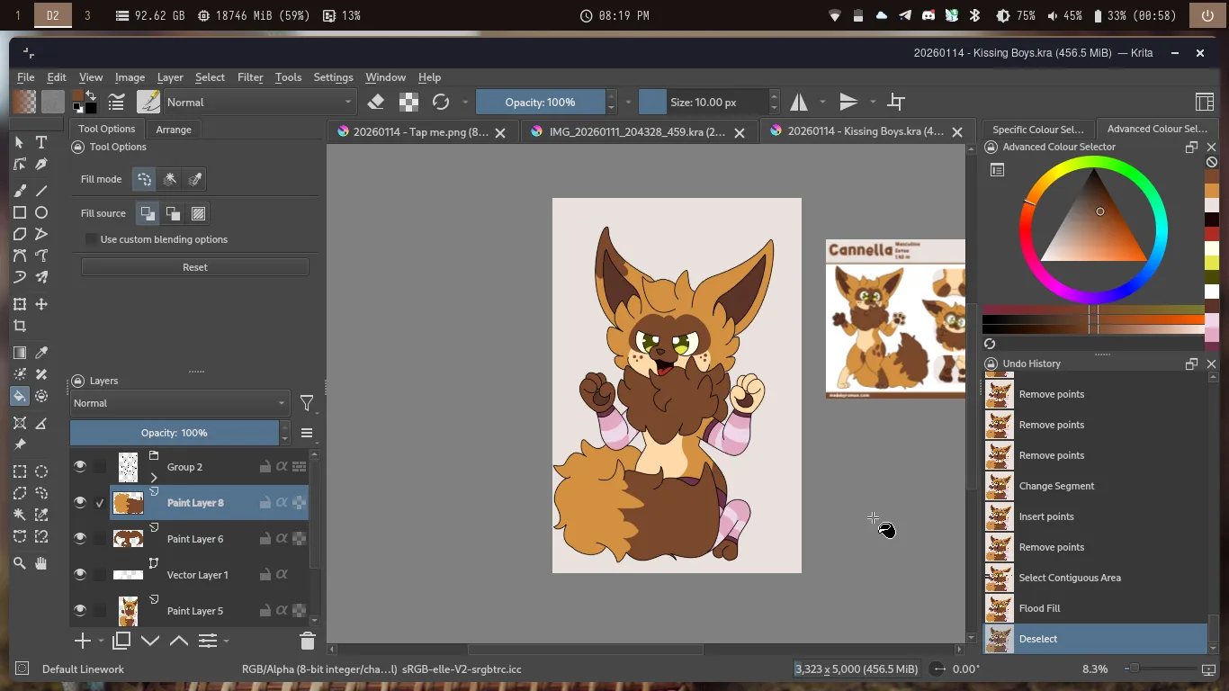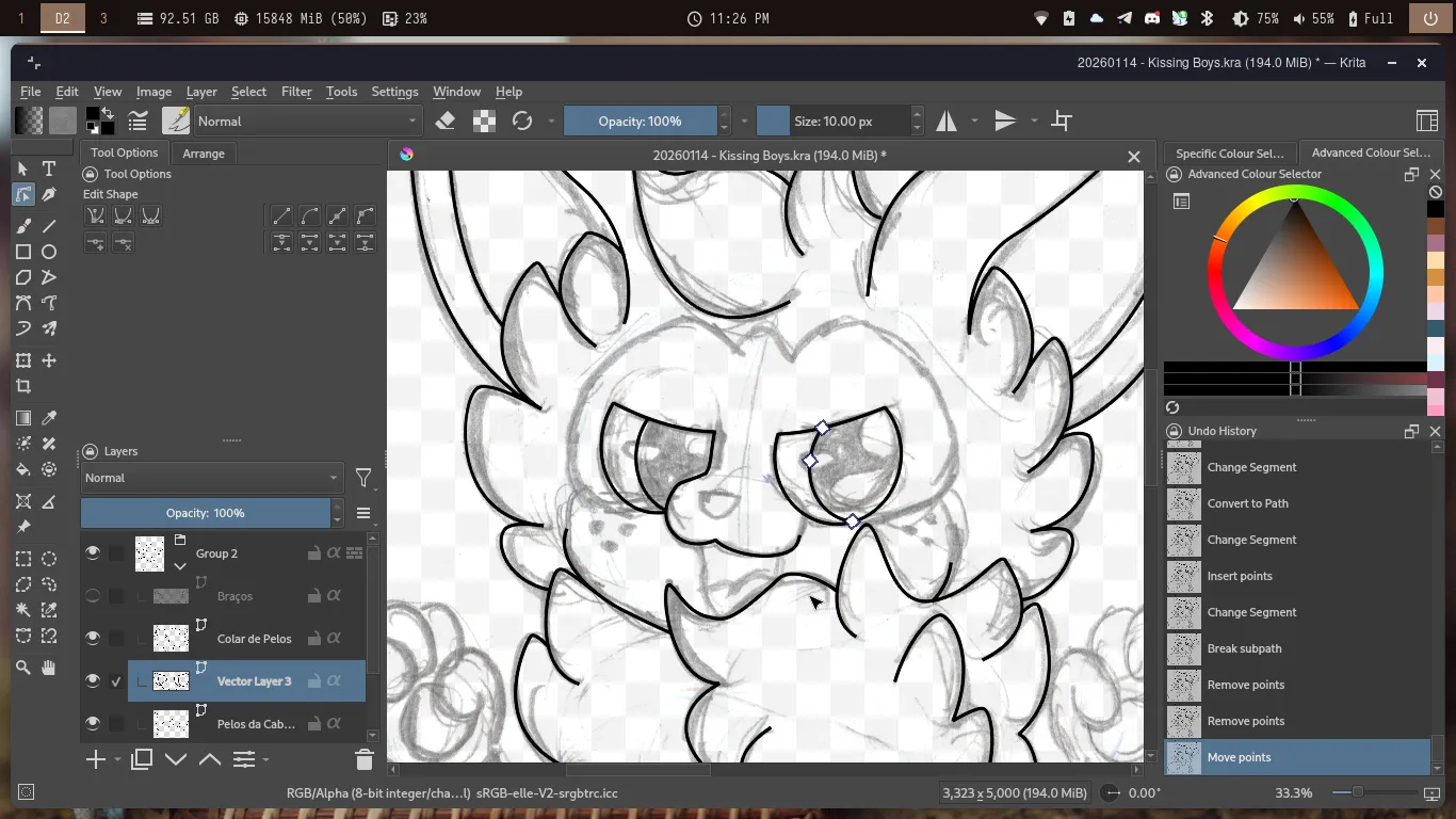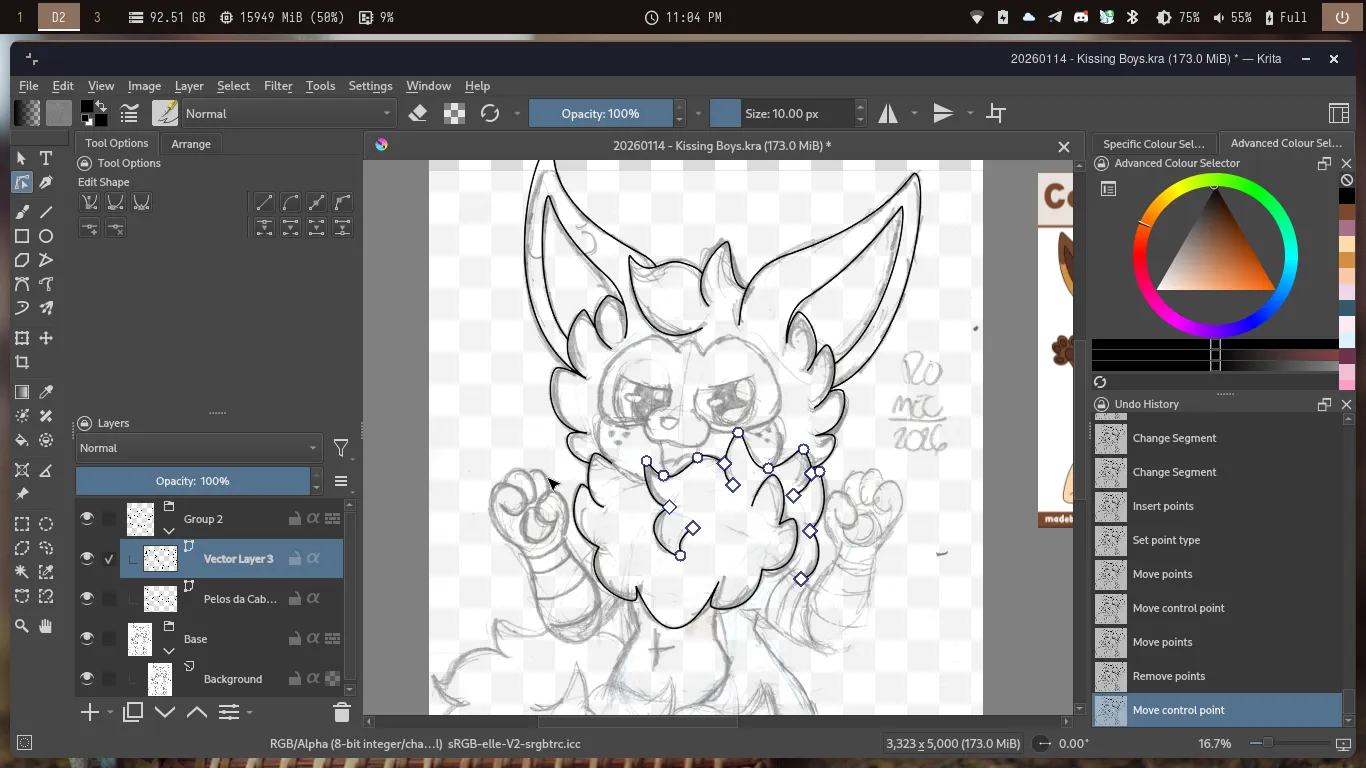 Eu até poderia dar o desenho por finalizado, porém decidi por digitalizar ele. Sendo assim, organizei as camadas no Krita e fui para a Digitalização. Aqui, eu fiz as Orelhas, os pelos da Cabeça e o Colar de Pelos do Cannella.