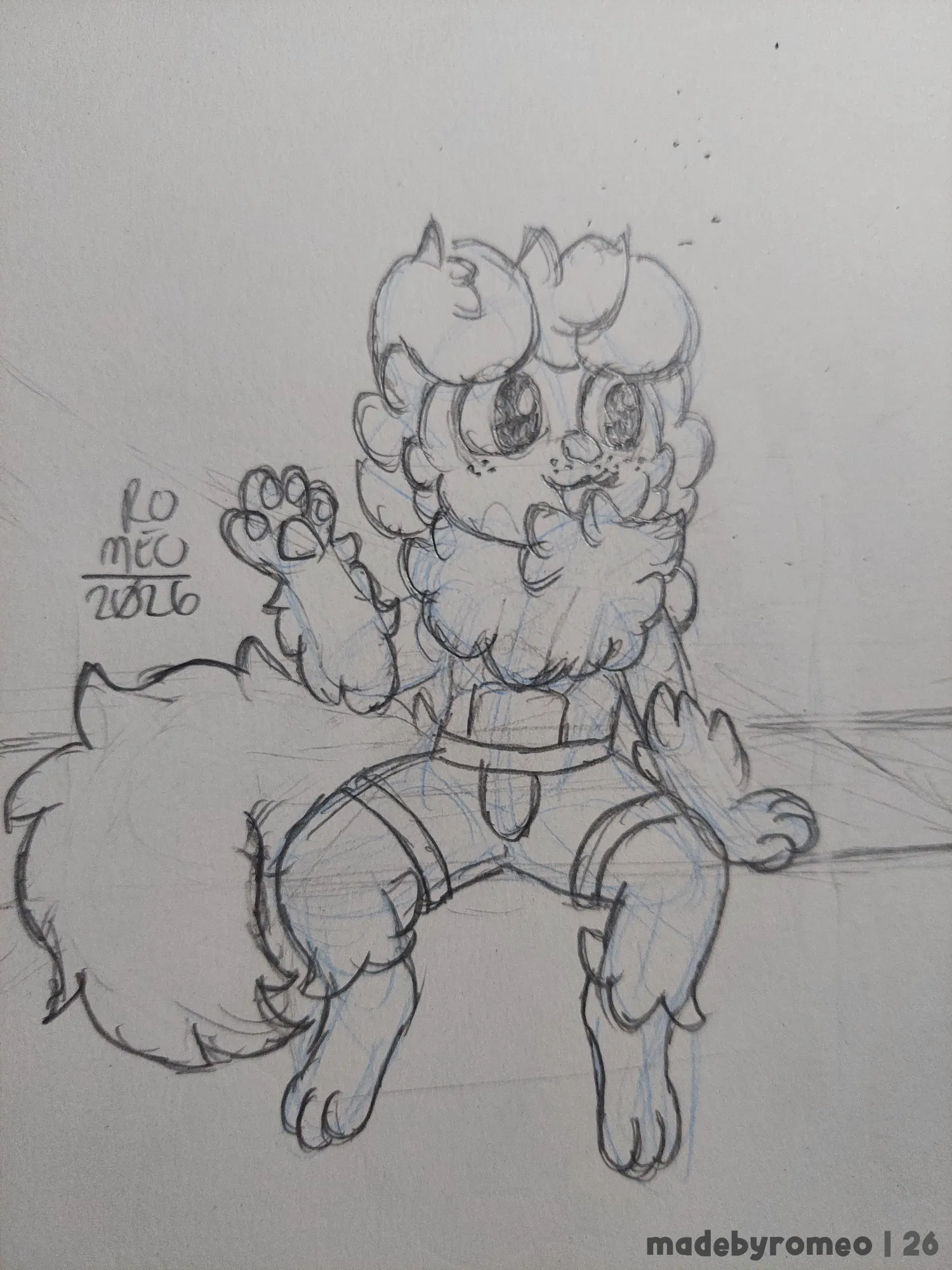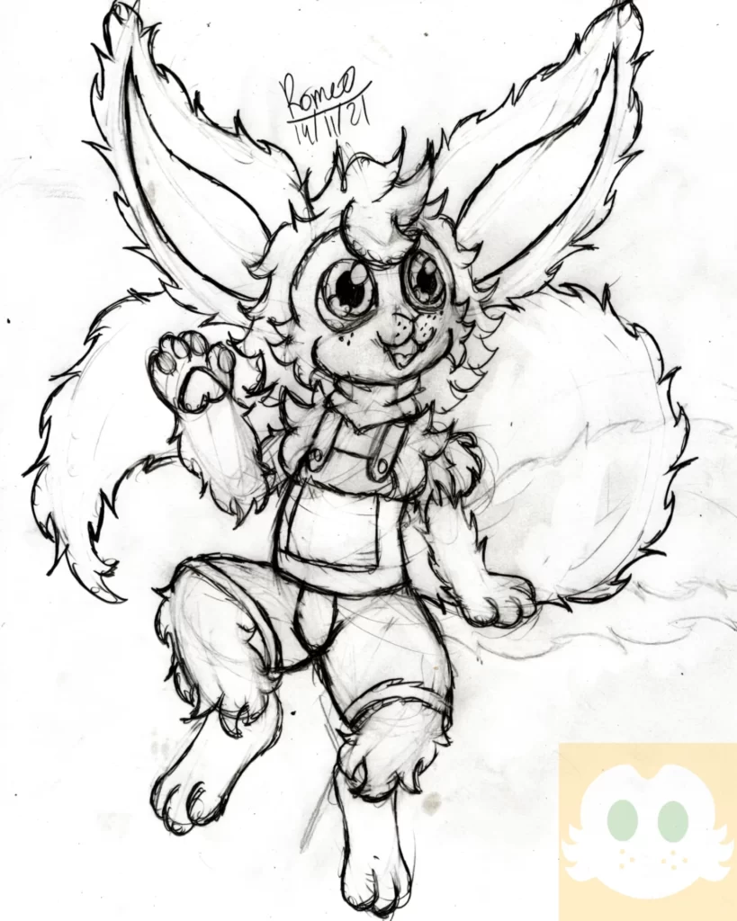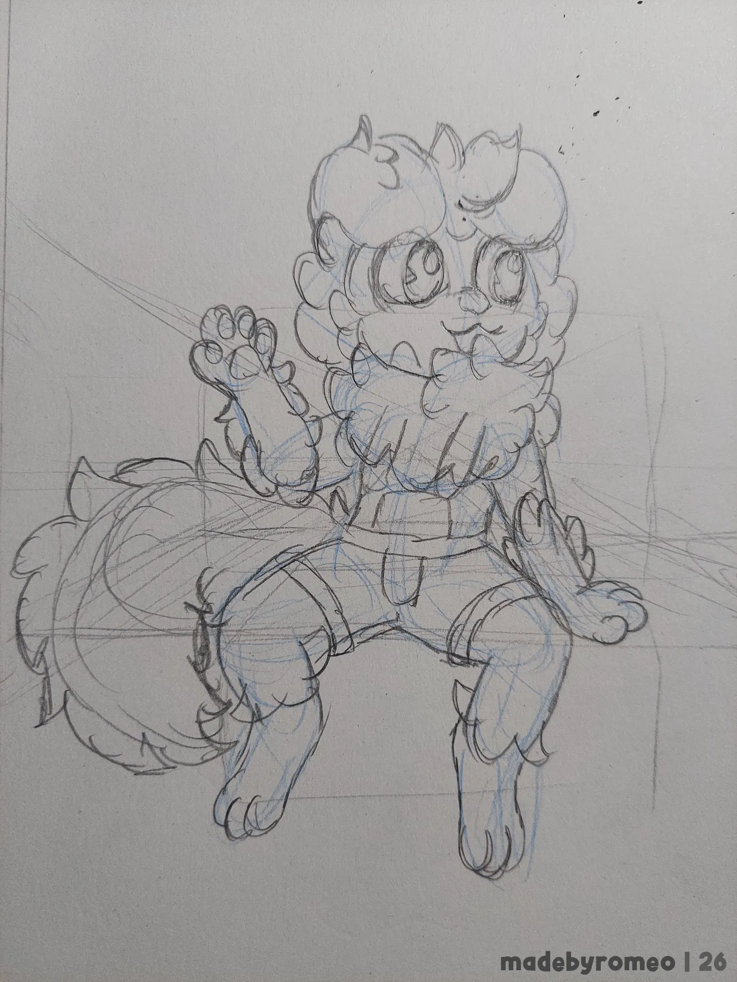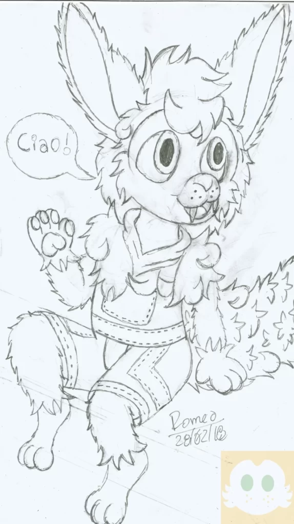 Comecei o desenho fazendo a perspectiva e colocando as primeiras linhas da pose do Romeo. Eu não estava muito confiante no começo, mas decidi começar a confiar no Processo. Depois fiz o esboço do Romeo, o que comecei a gostar mais.