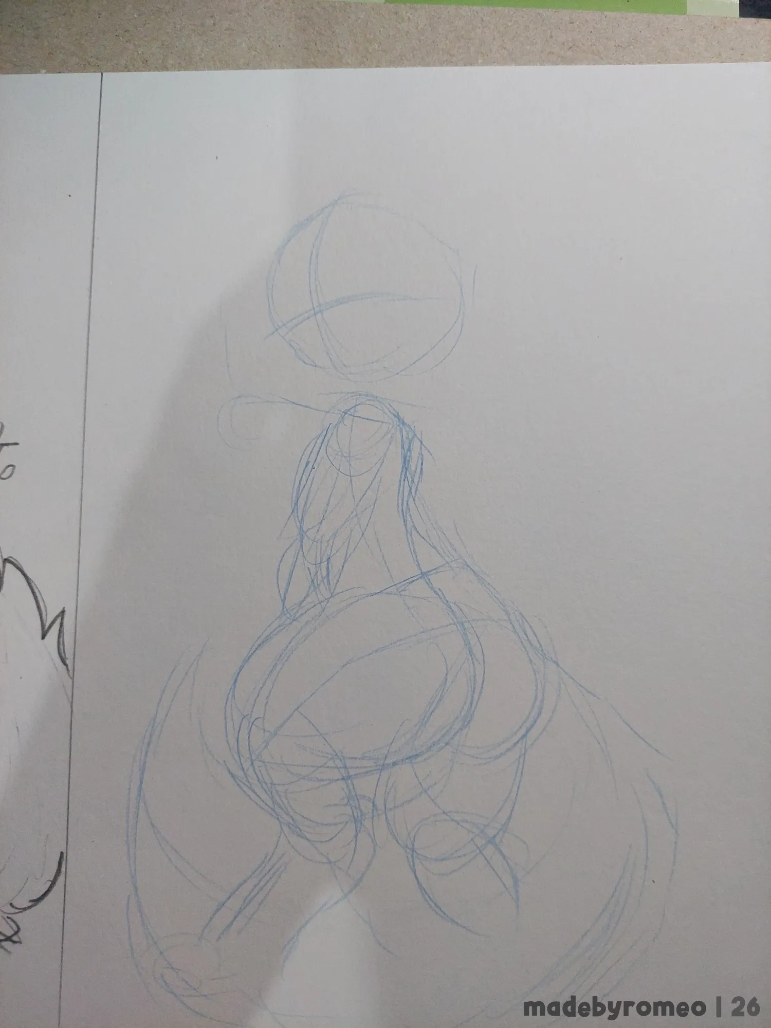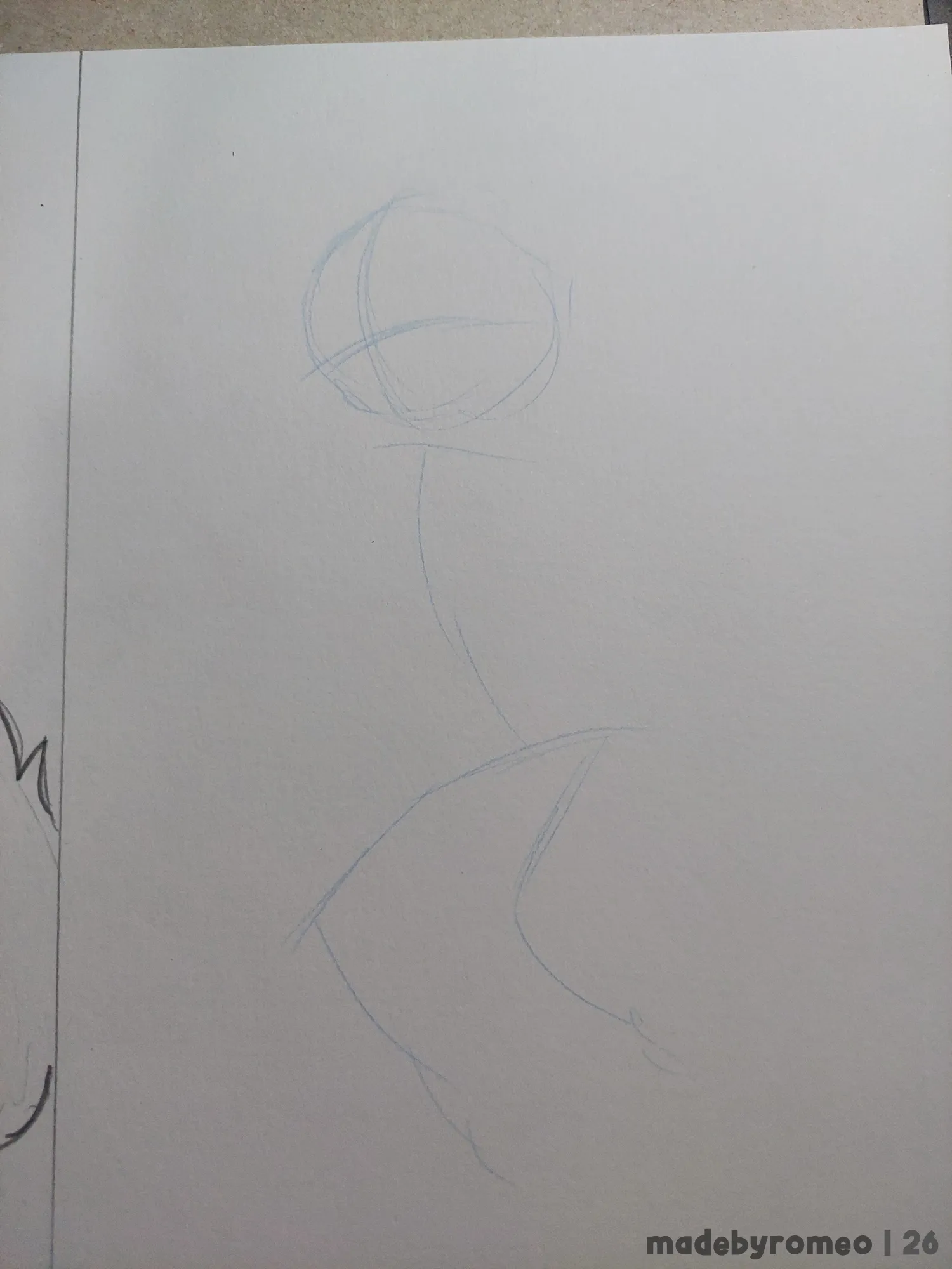 Como sempre, comecei o desenho com as primeiras linhas da pose. Por ser uma pose que eu não faço com muita frequência, eu sempre fico um pouco perdido nessa parte. Mas decidi confiar no processo, e com isso avancei no esboço. No esboço, passei a gostar muito mais desse desenho.