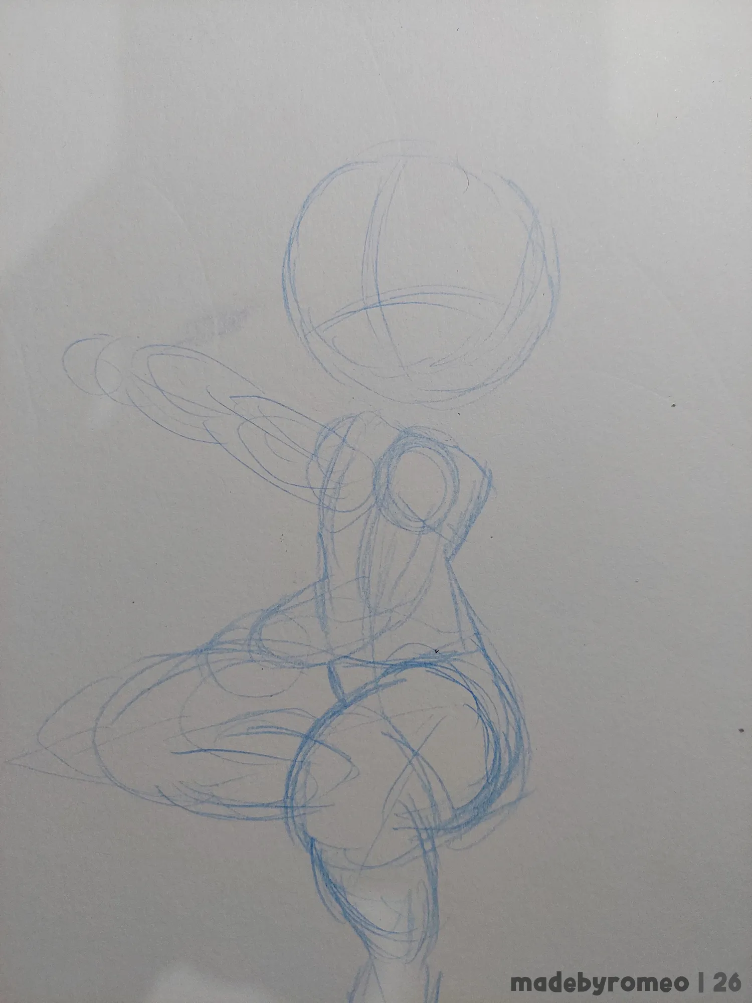 Comecei o desenho como sempre: Com as primeiras linhas da pose e logo após o esboço. Eu gostei bastante de como ficou. Eu iria fazer o Wonny com a cabeça levemente virada para o espectador, porém mudei um pouco de ideia aqui: Decidi fazer a cabeça do Wonny de perfil.