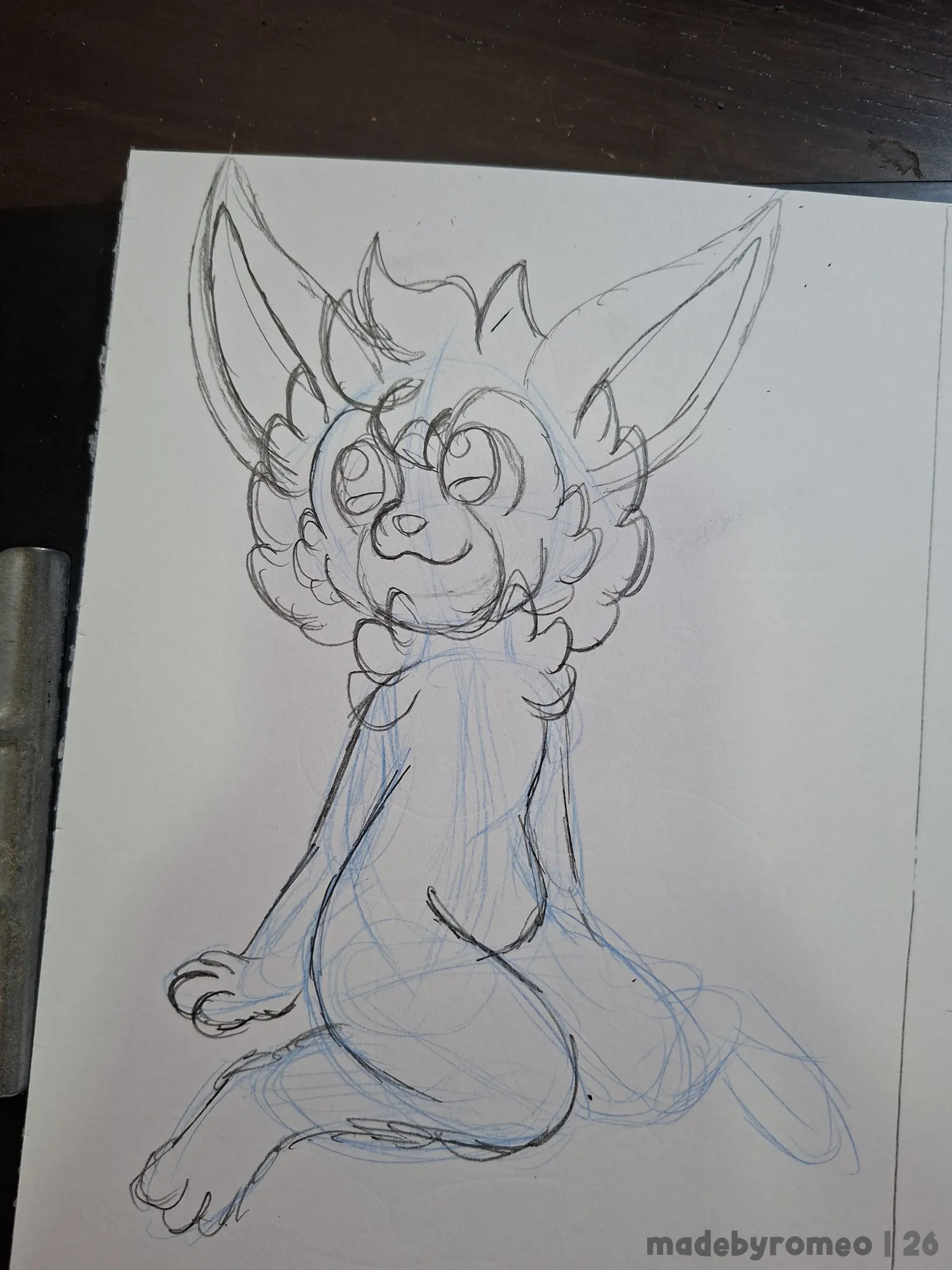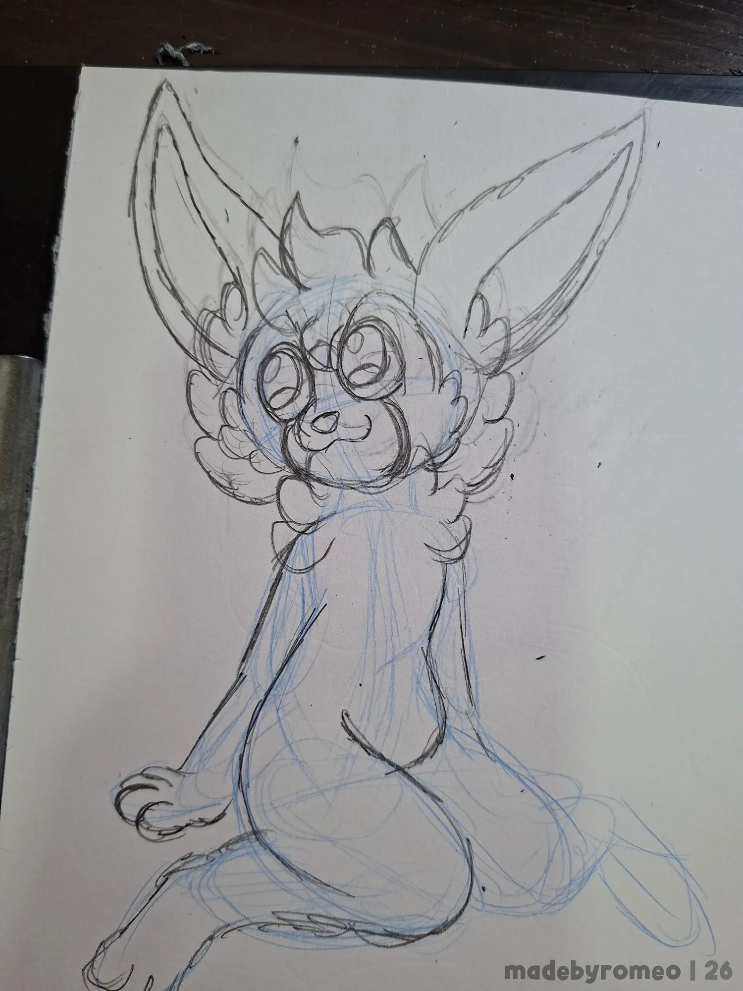 Comecei o desenho como sempre: Como as primeiras linhas da pose, e depois fui para o esboço do desenho. E tentei fazer a pose mais ou menos como a que WAKAKO havia feito. Depois, decidi que o personagem a ser desenhado seria o Sweet e assim comecei a dar forma ao desenho.
