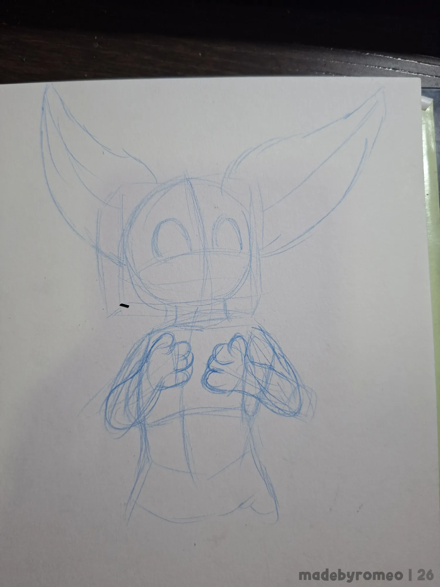Comecei o desenho como sempre: Com as primeiras formas e depois dando volume à elas. Com isso, decidi fazer o Angel, e assim fiz as orelhas e comecei a modelar pouco a pouco o Angel.