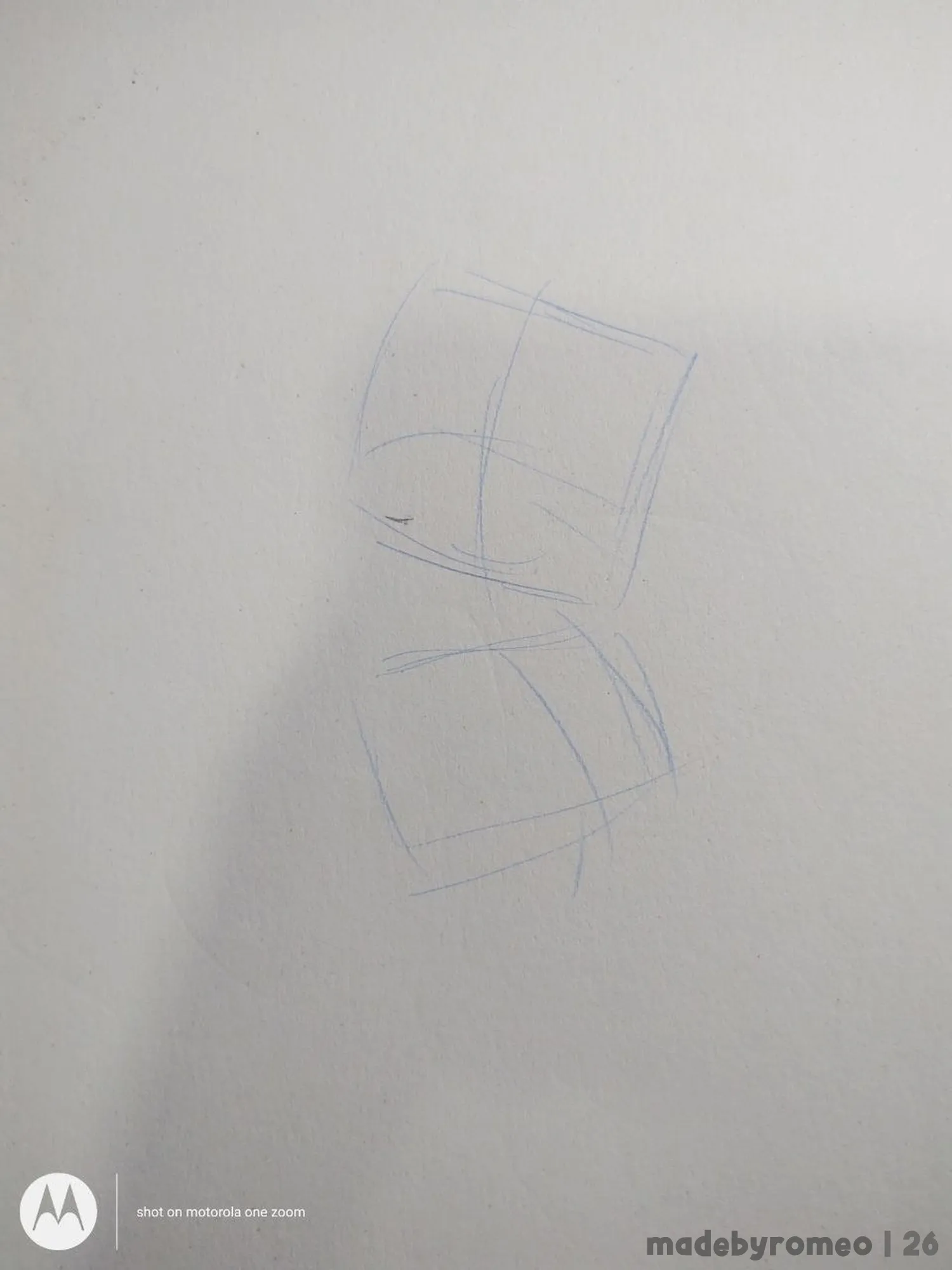 Comecei o desenho como sempre: Com as primeiras formas da cabeça e do tronco. Depois, comecei a fazer os braços e o peito dele. Gostei bastante de como havia ficado…