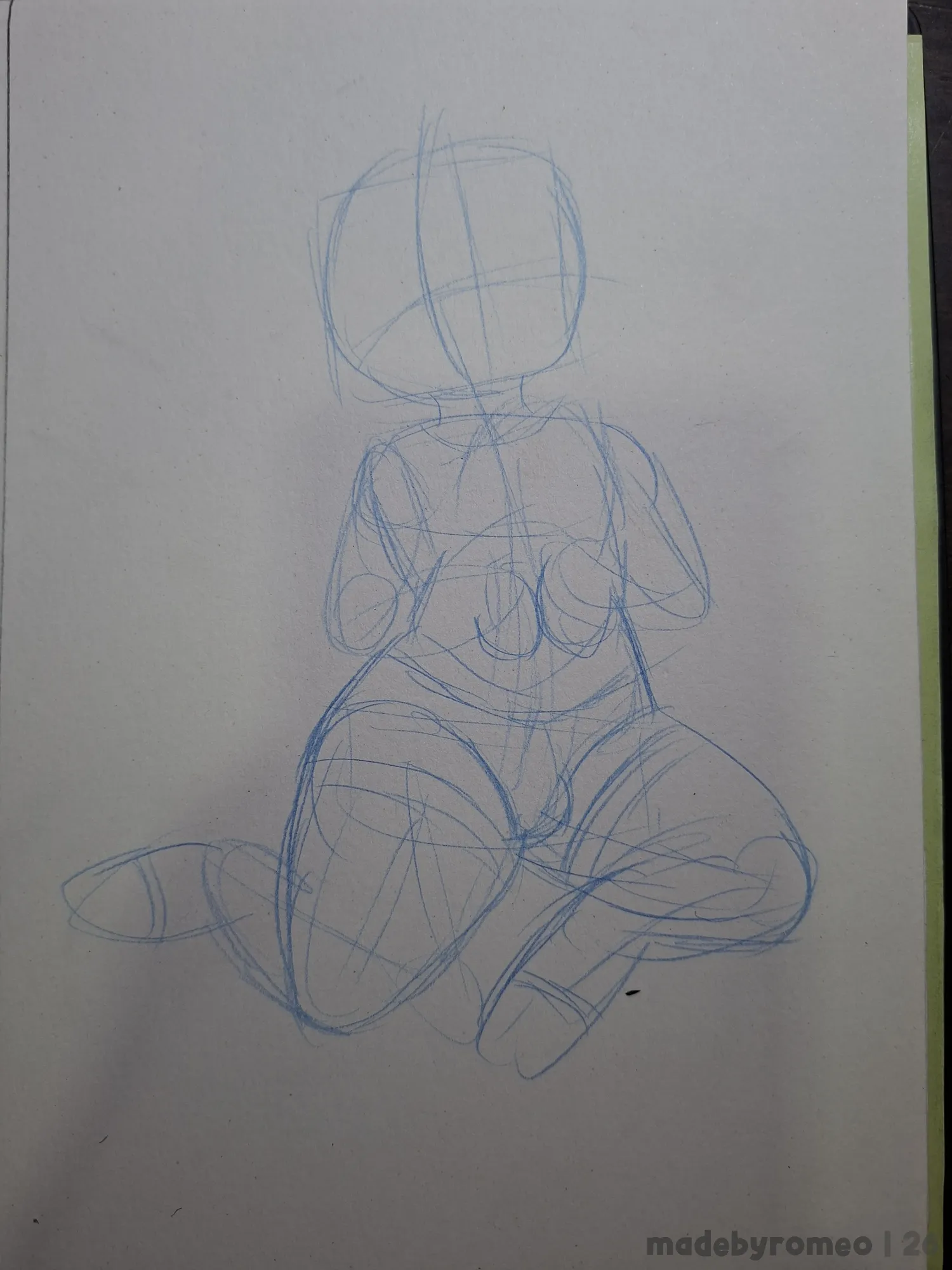 Comecei o desenho como sempre: Fazendo as primeiras linhas e formas do desenho e depois, fui refinando as formas até chegar numa pose que me agradasse.