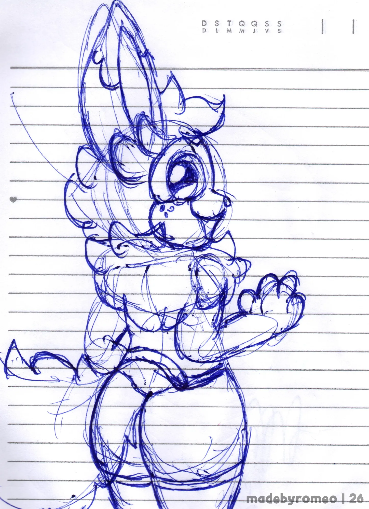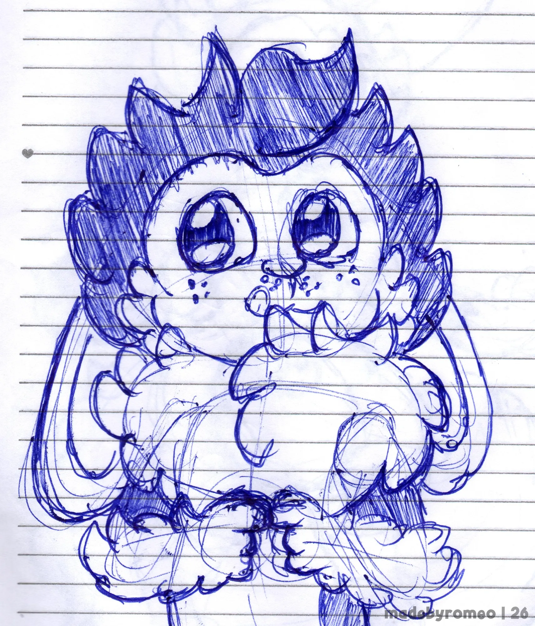 Olha só! O Cannella mostrando as suas coxas! E acho que ele está flertando com você. Esse é um desenho que gostei bastante de fazer, e realmente parece que ele está se mostrando para alguém,