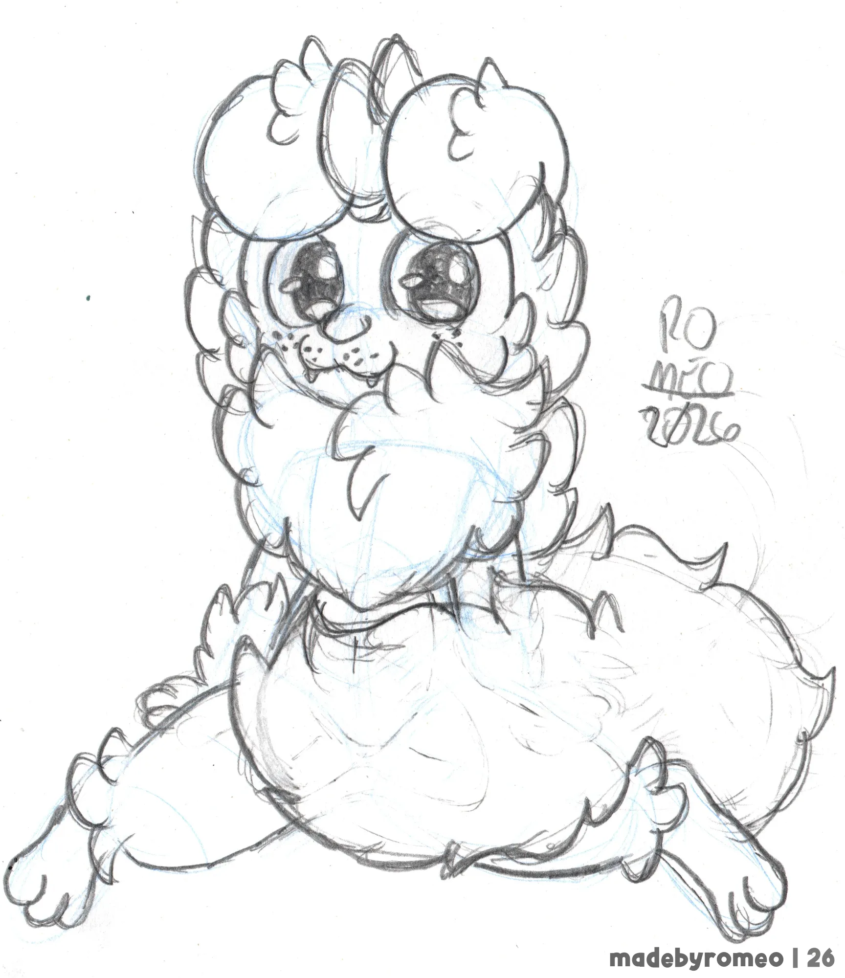 Principalmente, quando comparo com o desenho de 2019, que foi o que decidi refazer. E acho que o motivo, é que os pelos do Romeo estão bem mais macios no desenho de 2026, as pernas estão bem mais corretas do que nesse desenho de 2019.