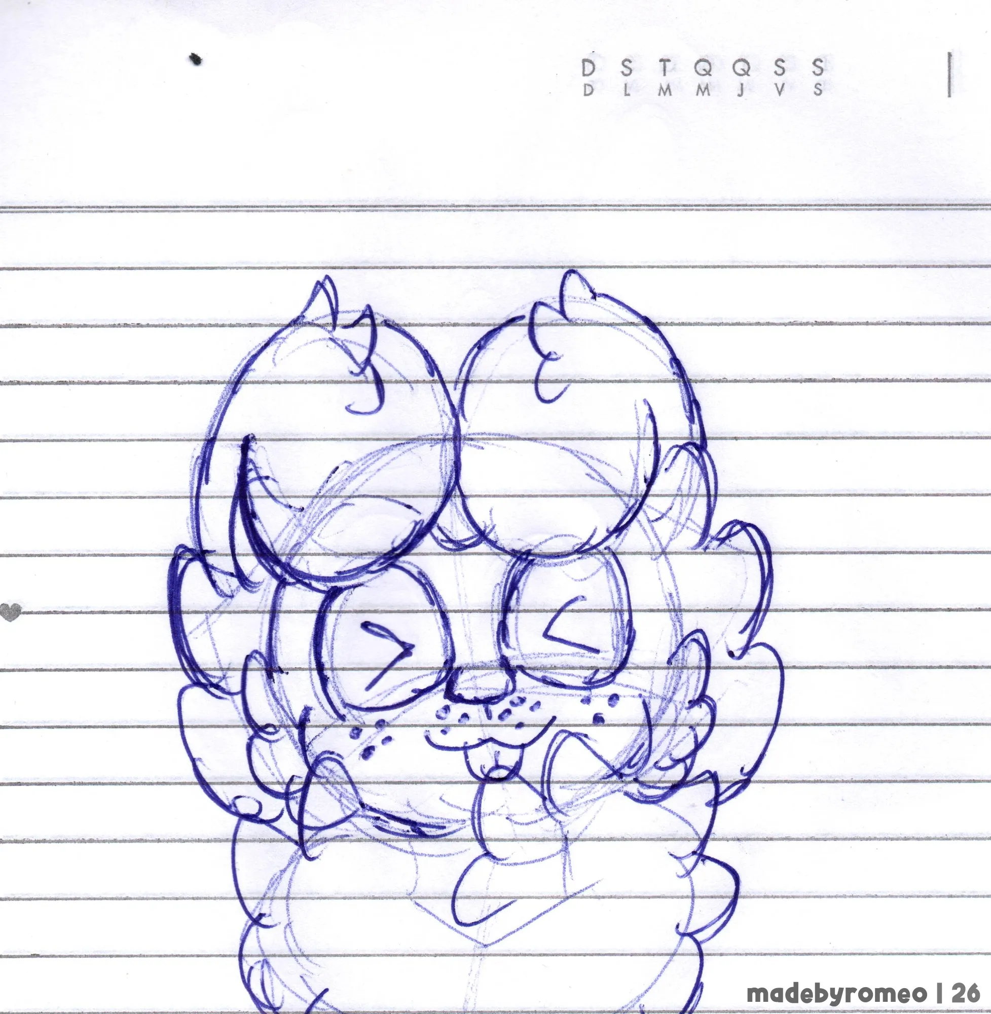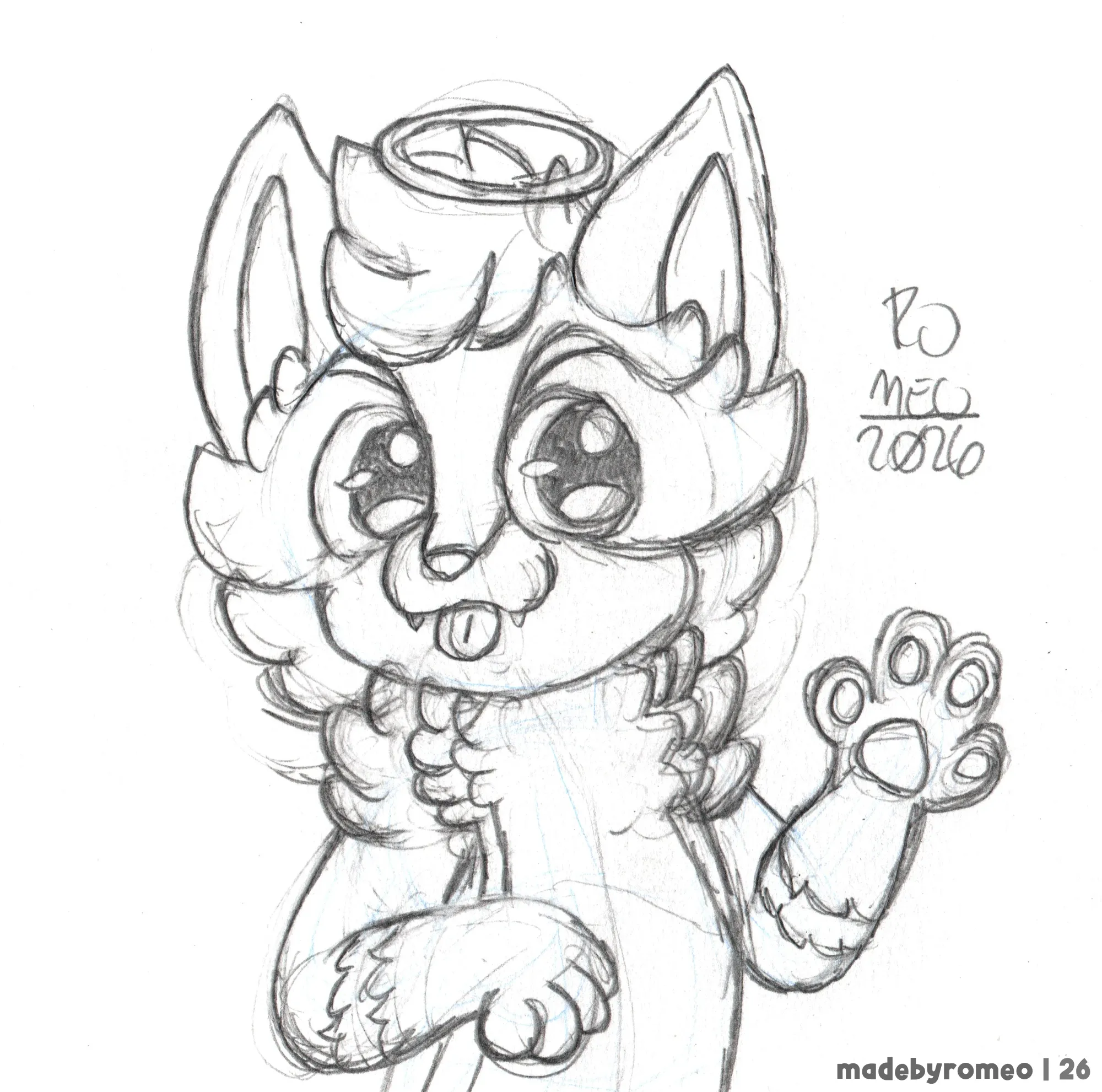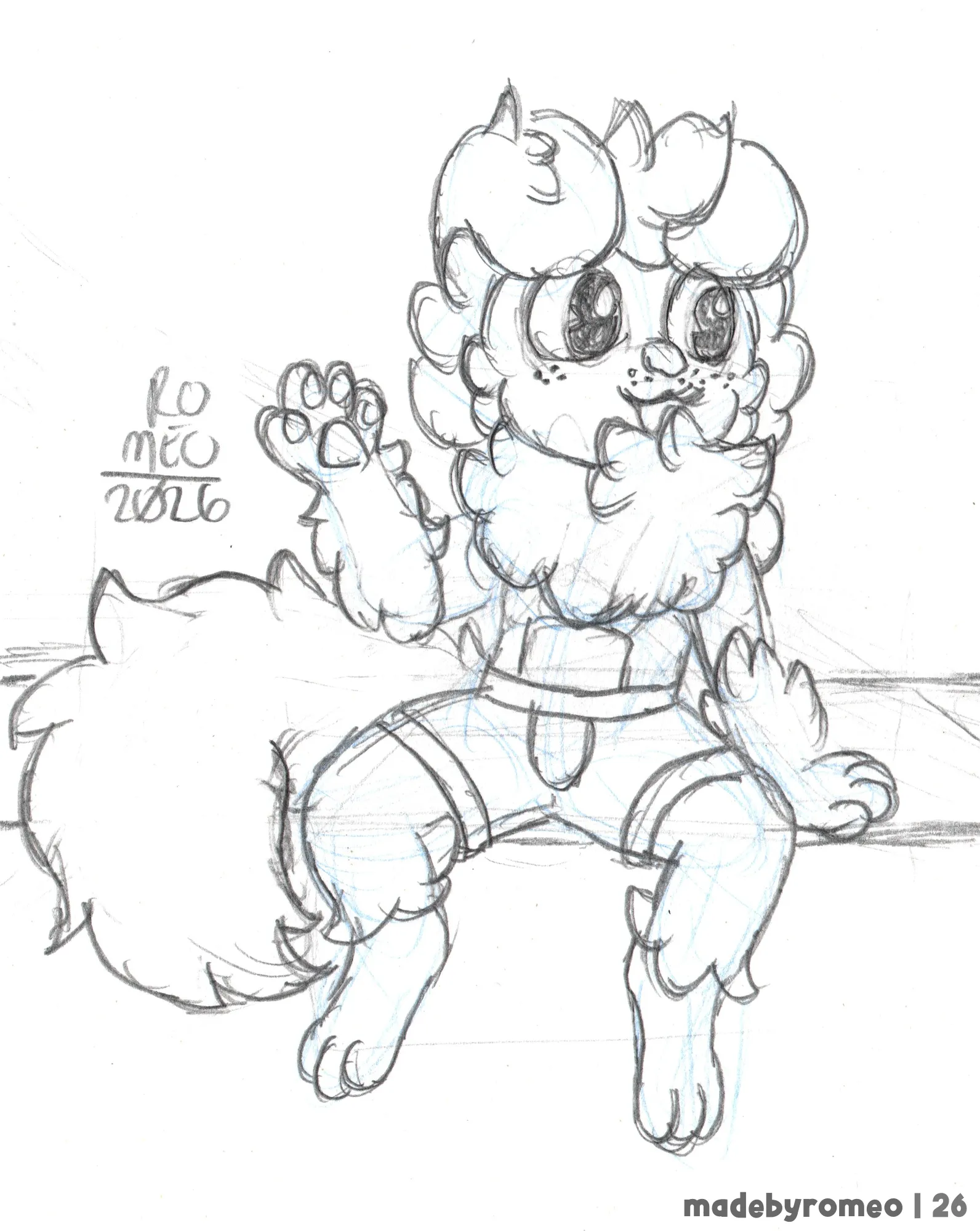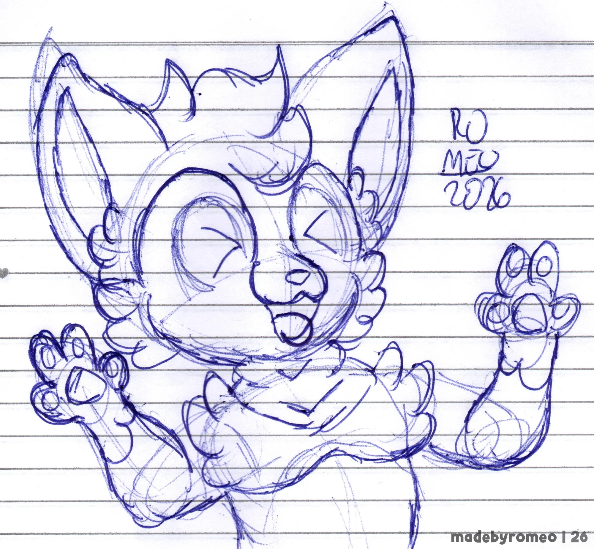 Apenas o Romeo sendo bobinho. Muito fofo, não é? Eu simplesmente adorei esse desenho, e vejo que consegui fazer uma pose com um pouco mais de movimento. Essa pose realmente ficou bem fofa e adorável.