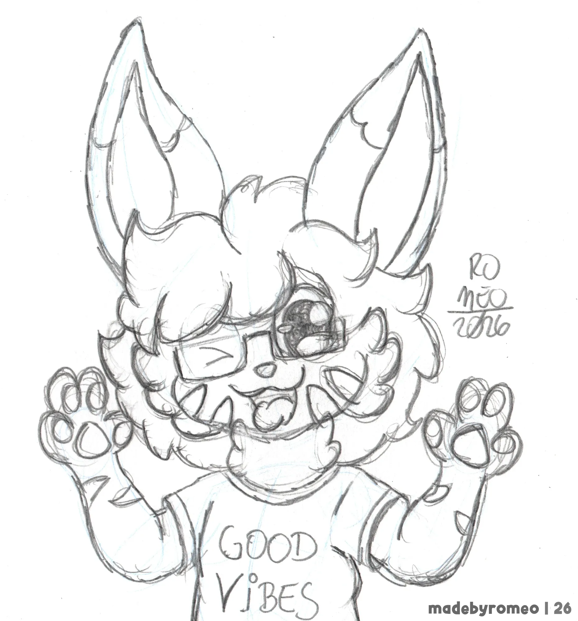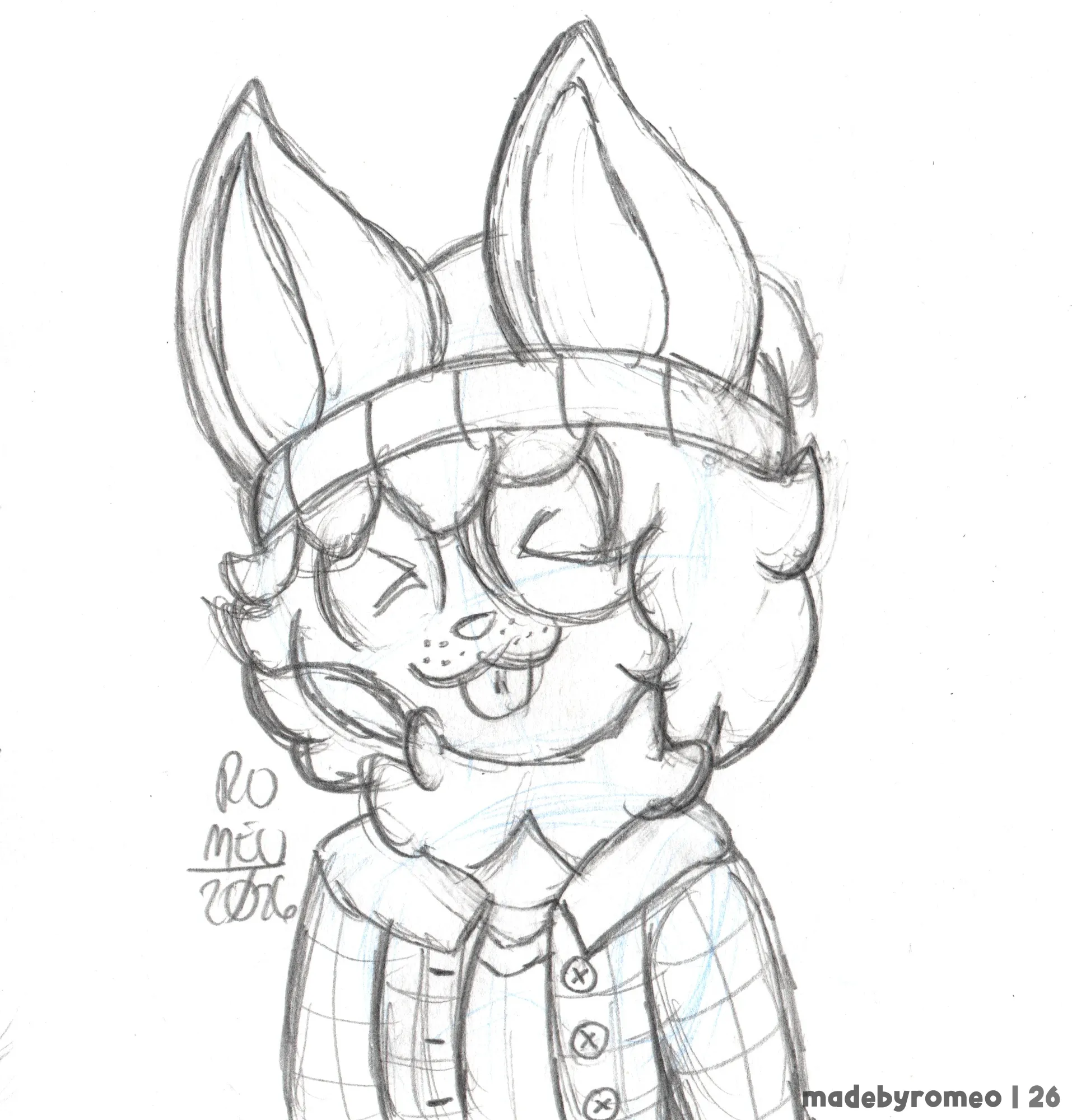 Mas, eu acabei fazendo algo: Testei como o Romeo ficaria com diferentes tipos de orelhas de coelho, o que me deixou tentado a mudar ele, e com isso, decidi por postar esse desenho.