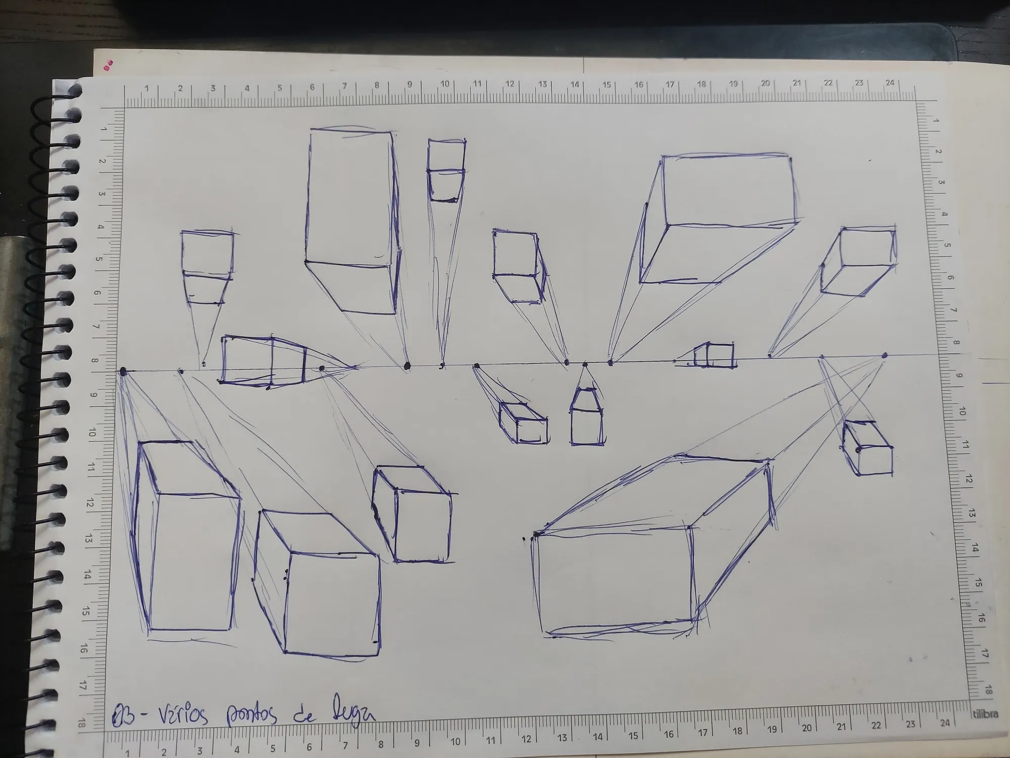 E depois desse vídeo,acabei indo para um outro livro que tenho há anos, mas que eu nunca tinha feito os exemplos dele: A Arte de Desenhar, por Renato Silva. Ele não explica muita coisa, apenas mostra os exemplos, e com isso comecei a fazer aqueles exercícios dos cubos.
